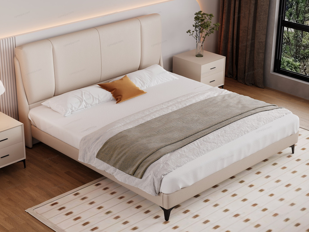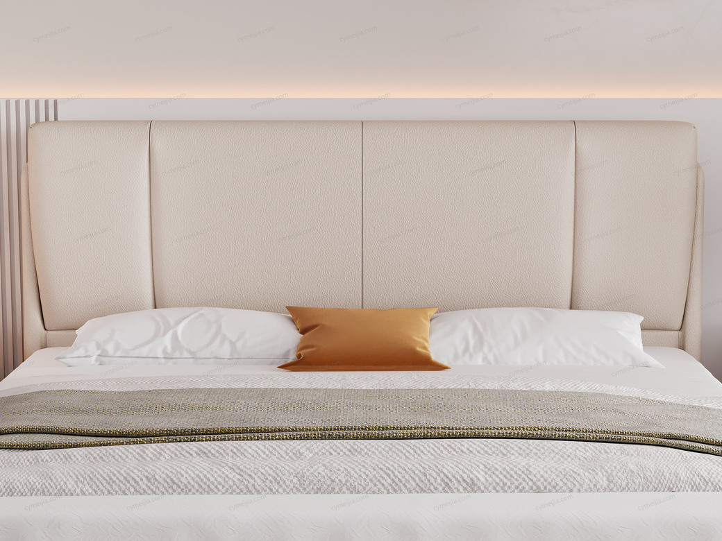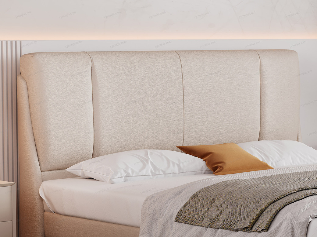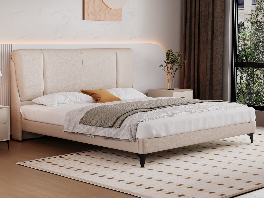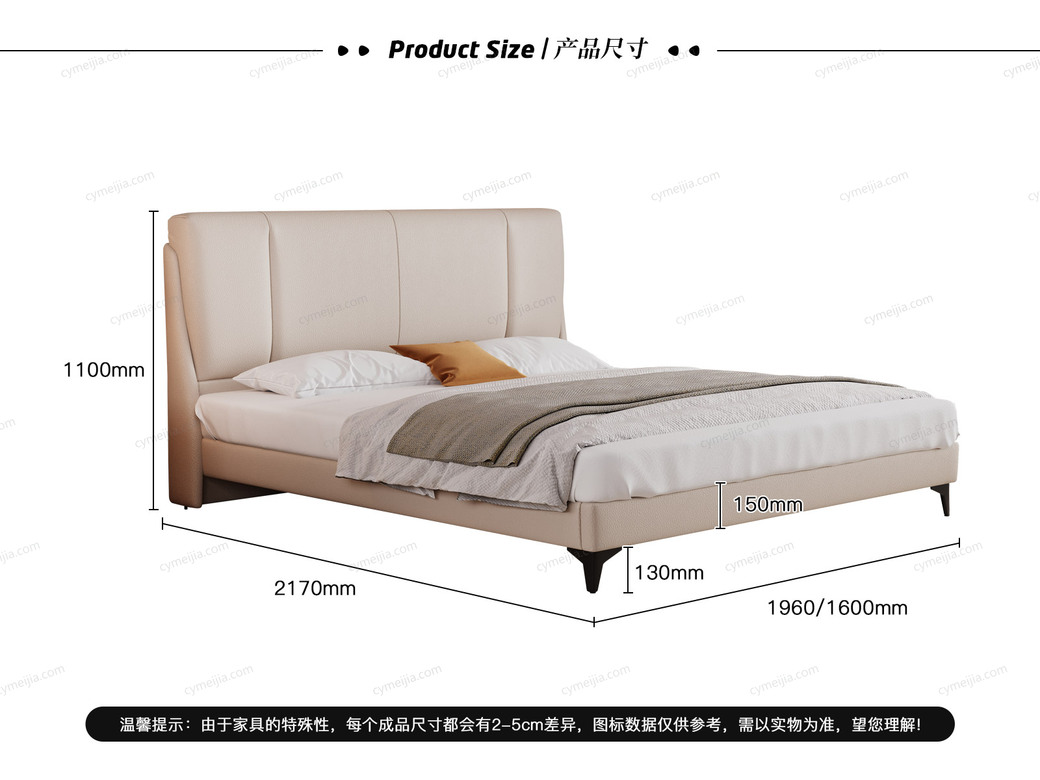 | 产品材质 : | 接触面进口头层牛皮+高回弹海绵+实木床架+10公分松木排骨架 |