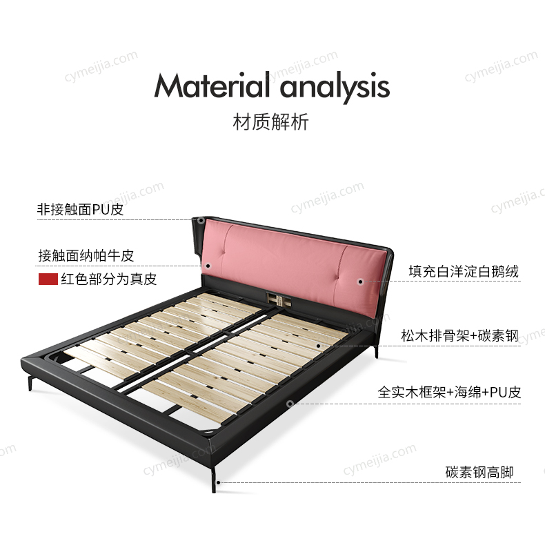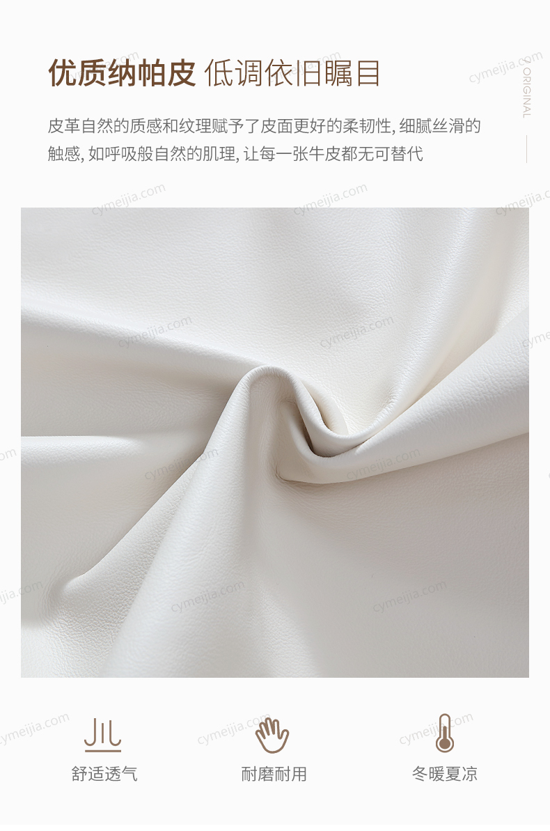 | 产品材质 : | 接触面进口头层黄牛皮+高密度海棉+鹅绒靠包+俄罗斯落叶松实木框架+碳素钢脚+10公分松木排骨架 |