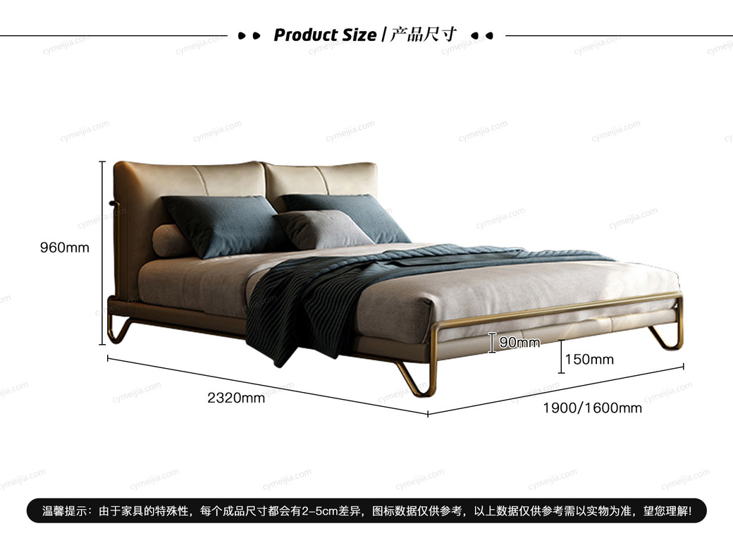| 适配床垫 : | 长2000*宽1800*高220-250mm |