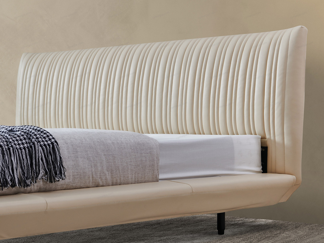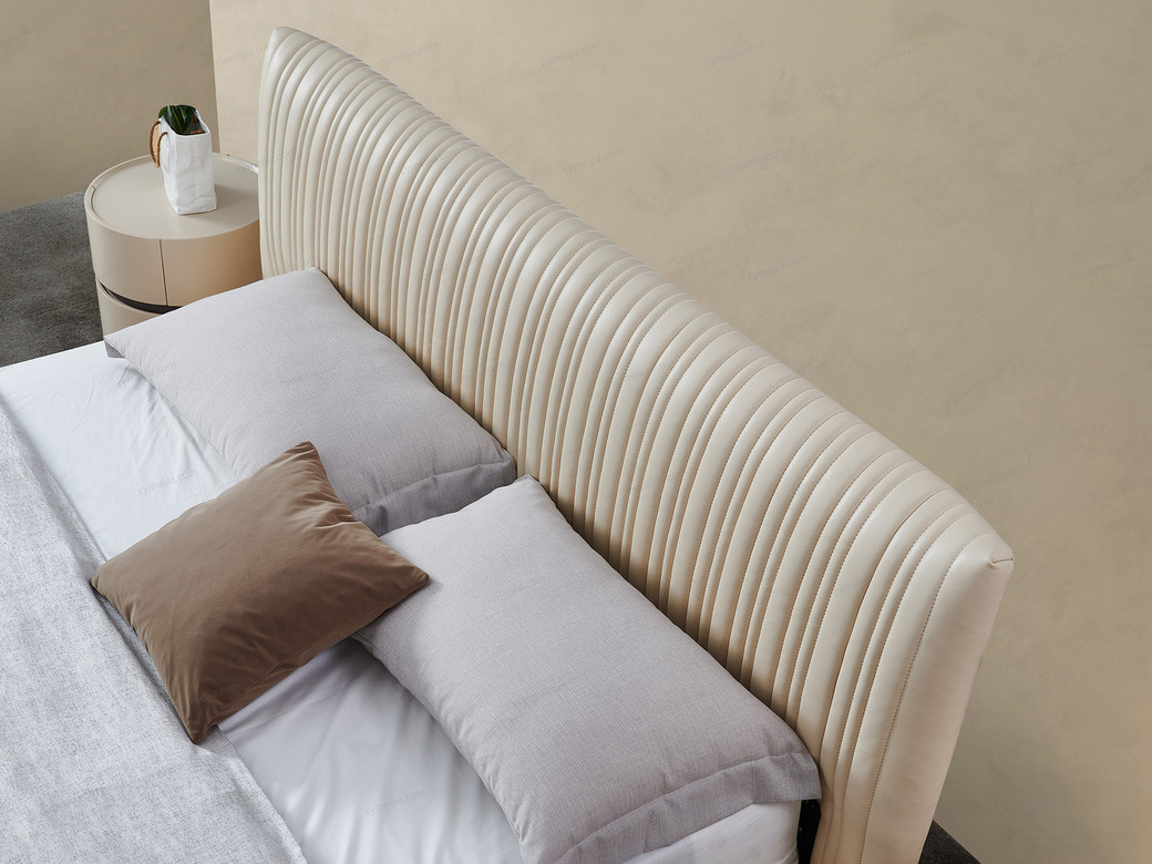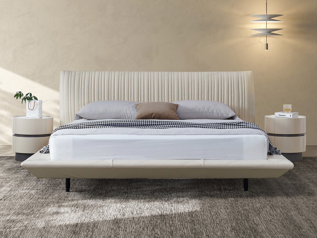 | 产品材质 : | 接触面头层黄牛皮+高回弹海绵+进口落叶松实木床框架+10公分松木排骨架+15CM碳素钢脚 |