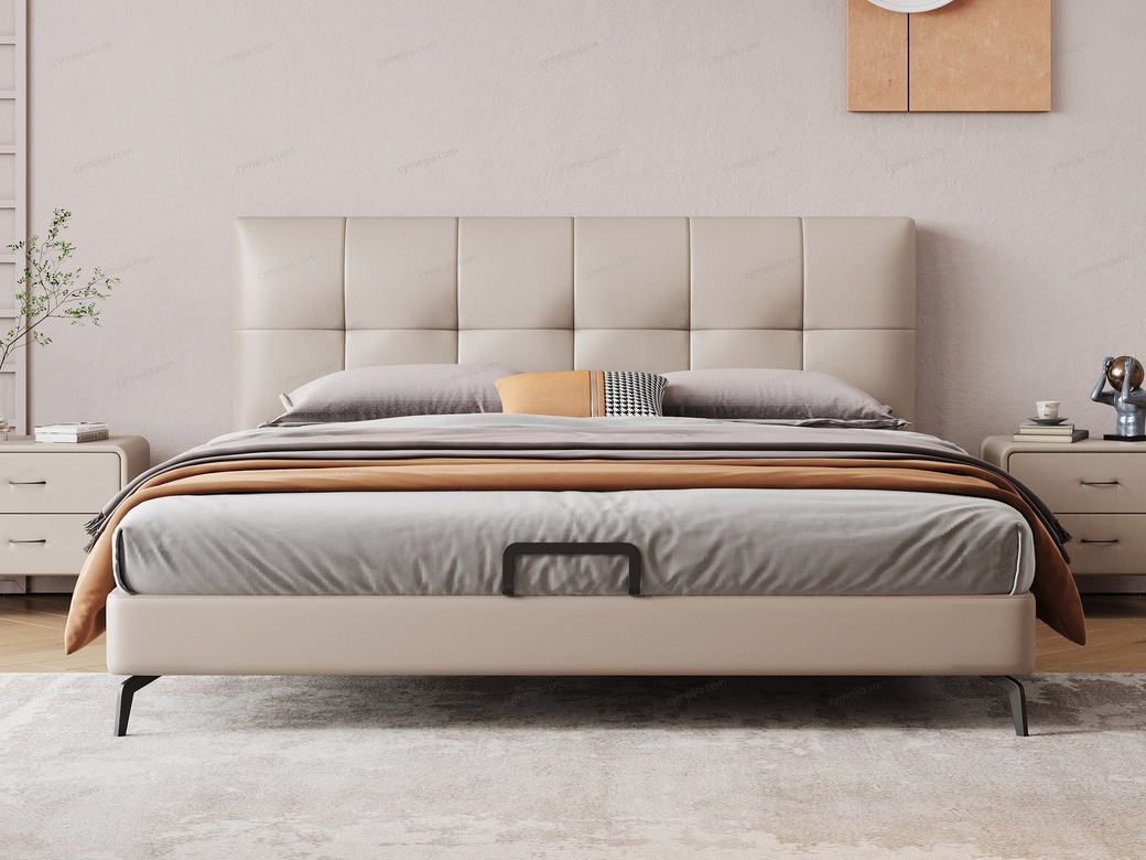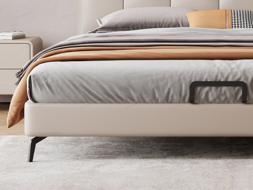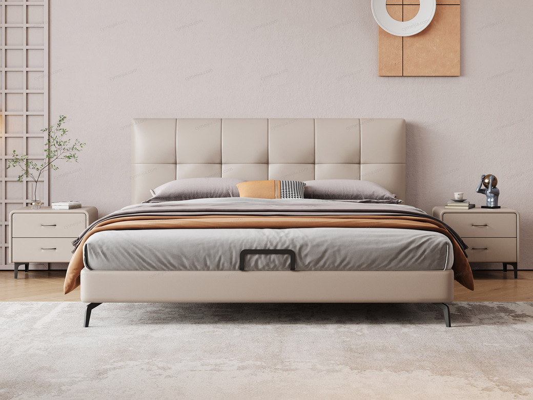 | 产品材质 : | 床:接触面进口头层黄牛皮+高密度海绵+俄罗斯落叶松实木框架+碳素钢脚+10公分松木排骨架;床头柜:缓冲导轨+实木抽屉 |