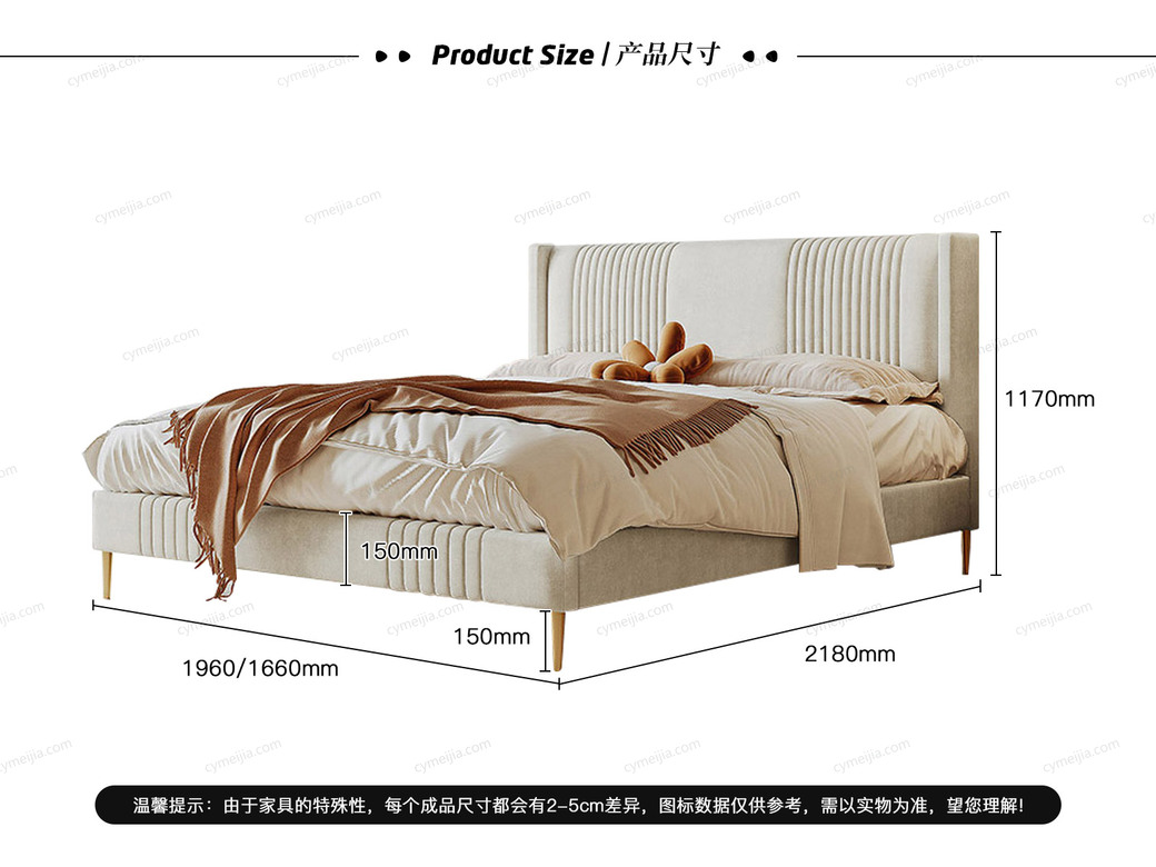 | 适配床垫 : | 长2000*宽1800*高220mm |