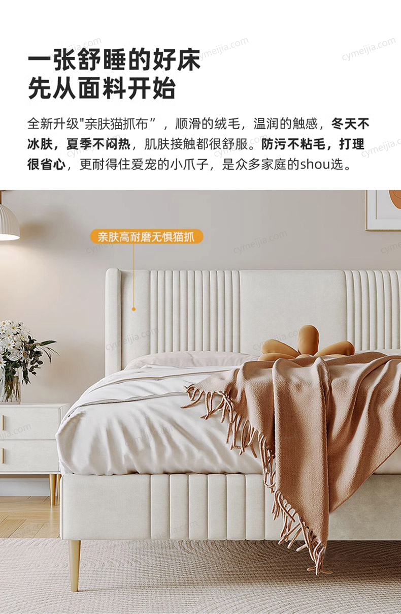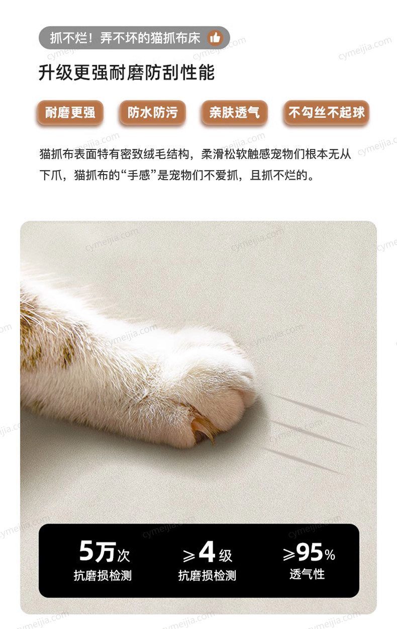 | 产品材质 : | 猫抓布+高回弹海绵+实木框架+10公分松木排骨架+五金脚 |
