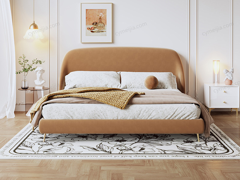| 产品材质 : | 磨砂布+高回弹海绵+松木方+实木多层板+10公分松木排骨架+电镀金色脚 |