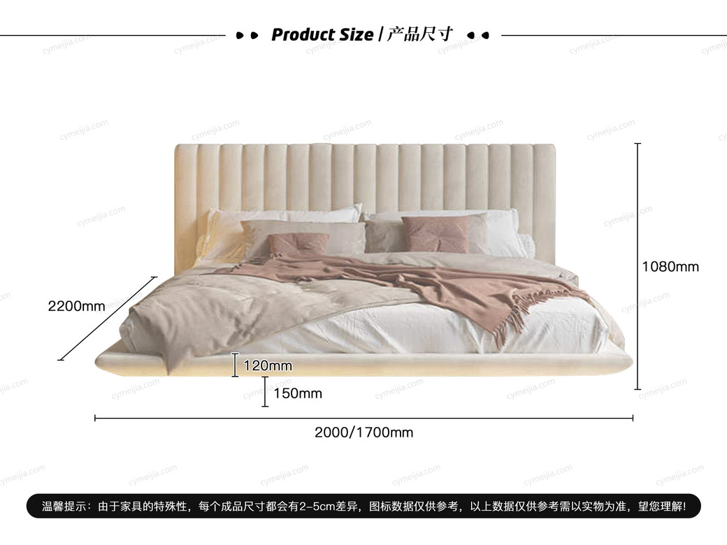 | 适配床垫 : | 长2000*宽1500mm*高220-230mm |