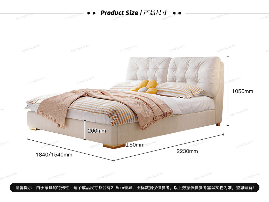 | 适配床垫 : | 长2000*宽1500*高220mm |