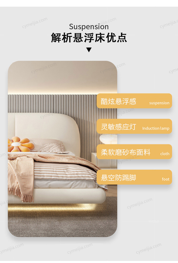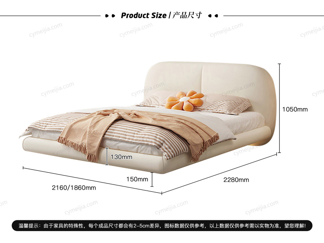 | 适配床垫 : | 长2000*宽1500*厚180-250mm |