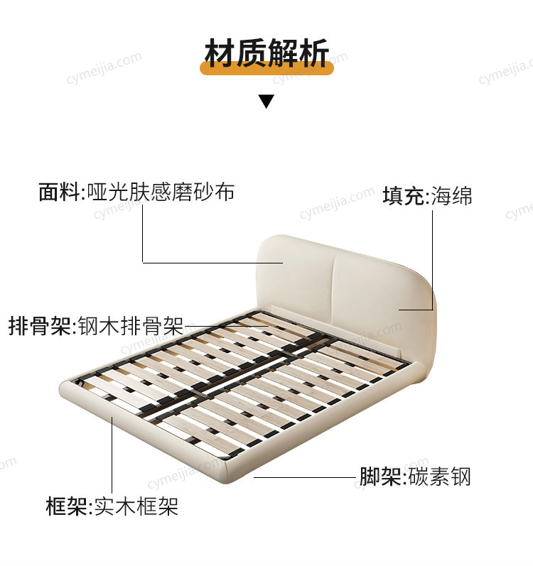 | 适配床垫 : 长2000*宽1500*厚180-250mm | 包件数 : 3 | 床结构 : 排骨架 | |