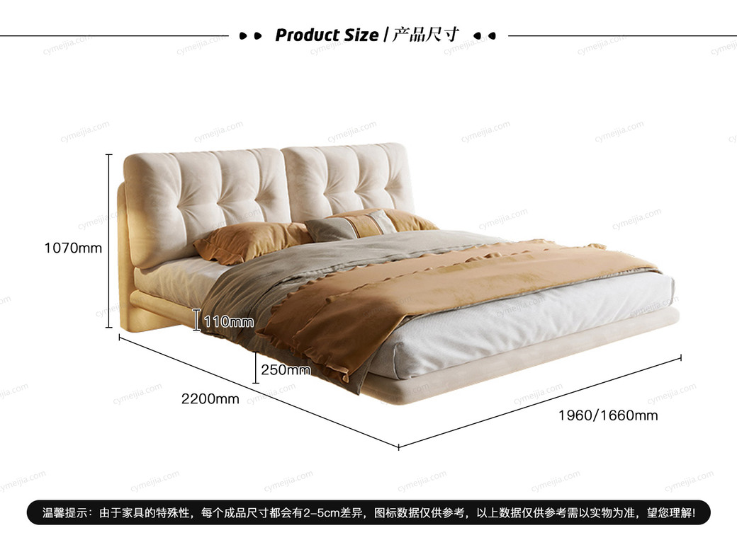 | 适配床垫 : | 长2000*宽1800*高220mm |