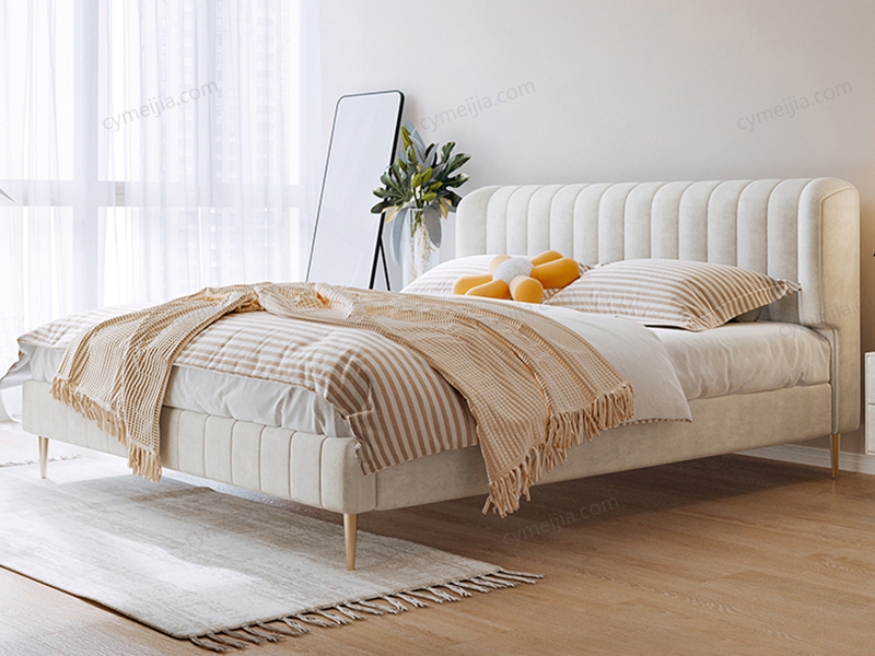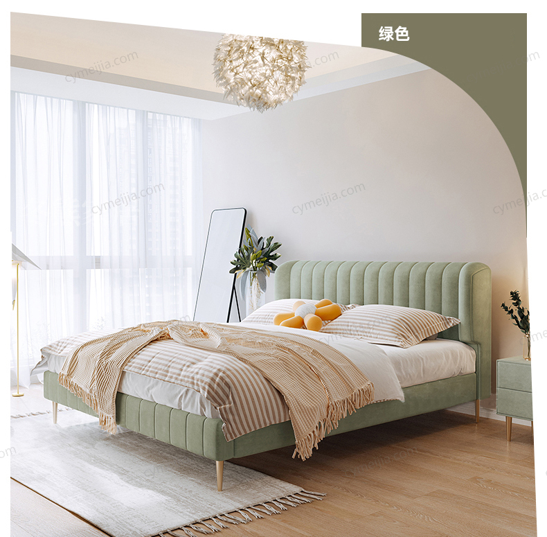 | 产品材质 : | 磨砂布+高回弹海绵+松木方+实木多层板+10公分松木排骨架+电镀金色脚 |