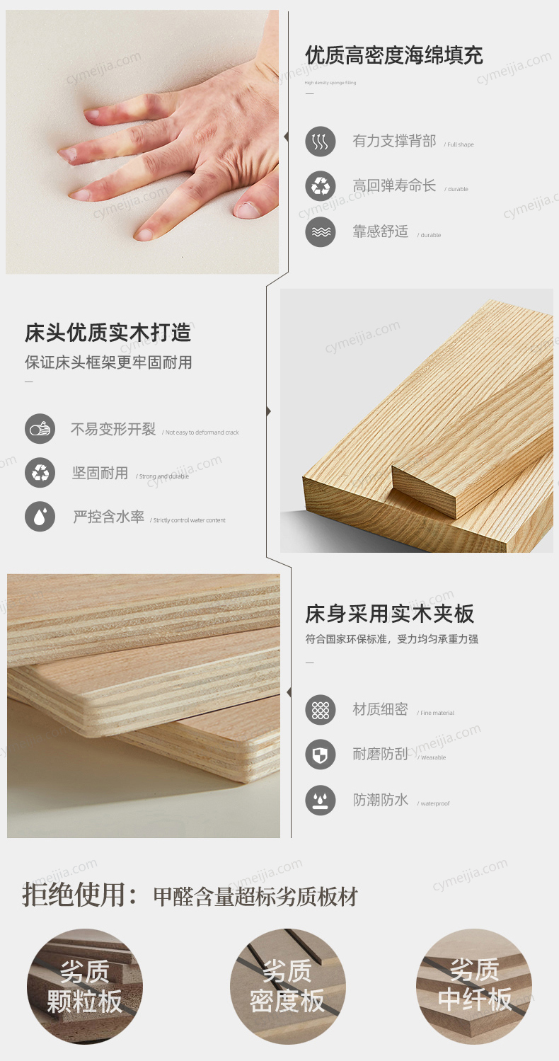 | 适配床垫 : | 长2000*宽1800*厚180-220mm |