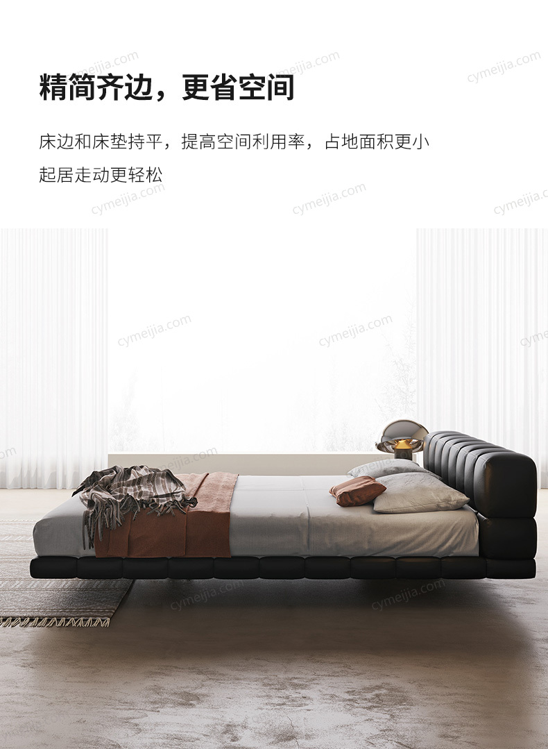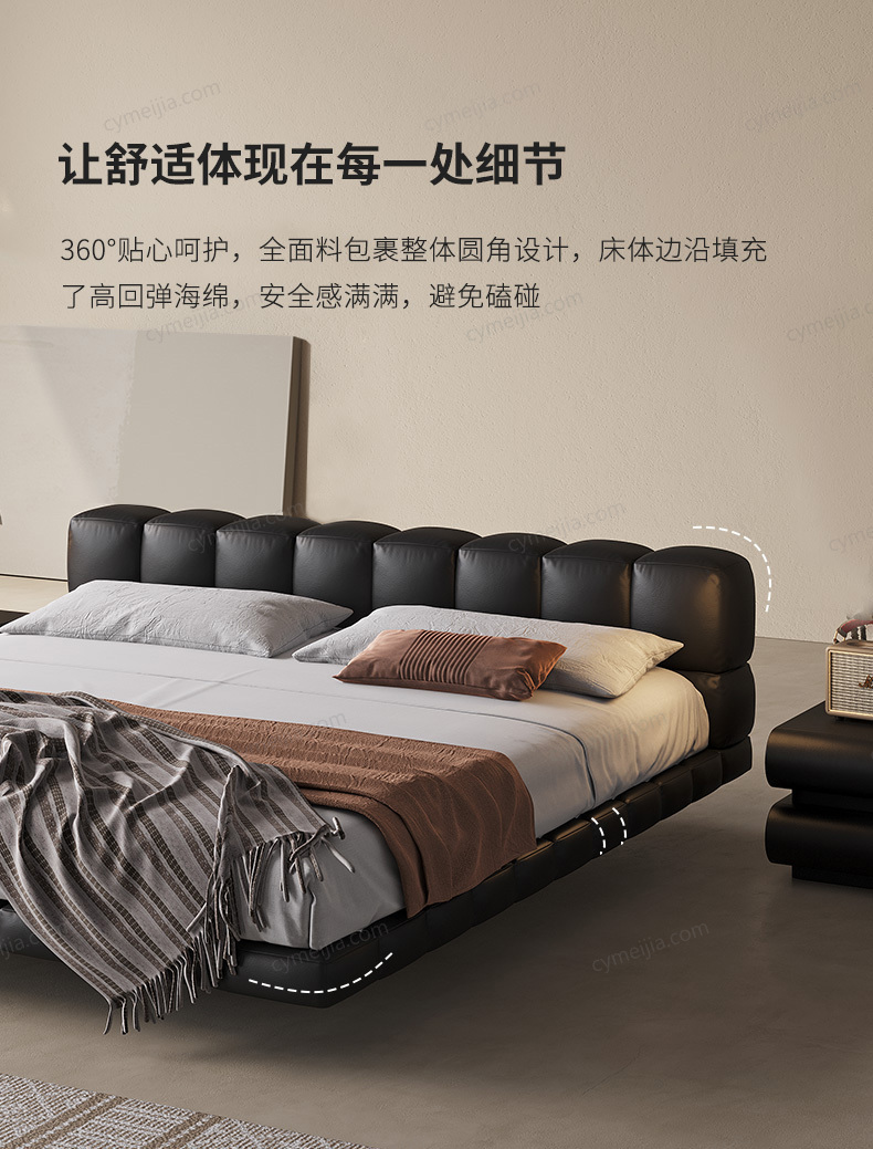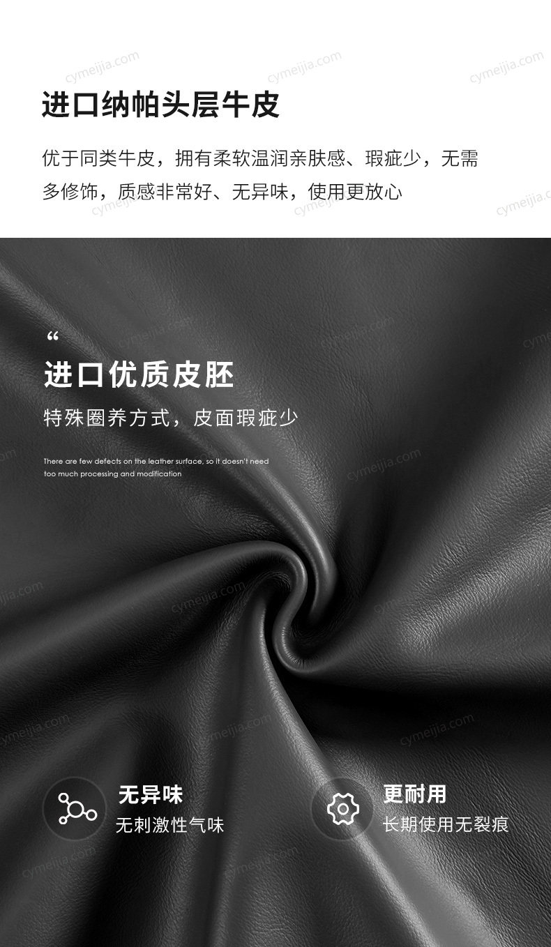 | 产品材质 : | 接触面头层黄牛皮+高回弹海绵+俄罗斯落叶松实木框架+五金脚+灯带+搭配10公分松木排骨架 |