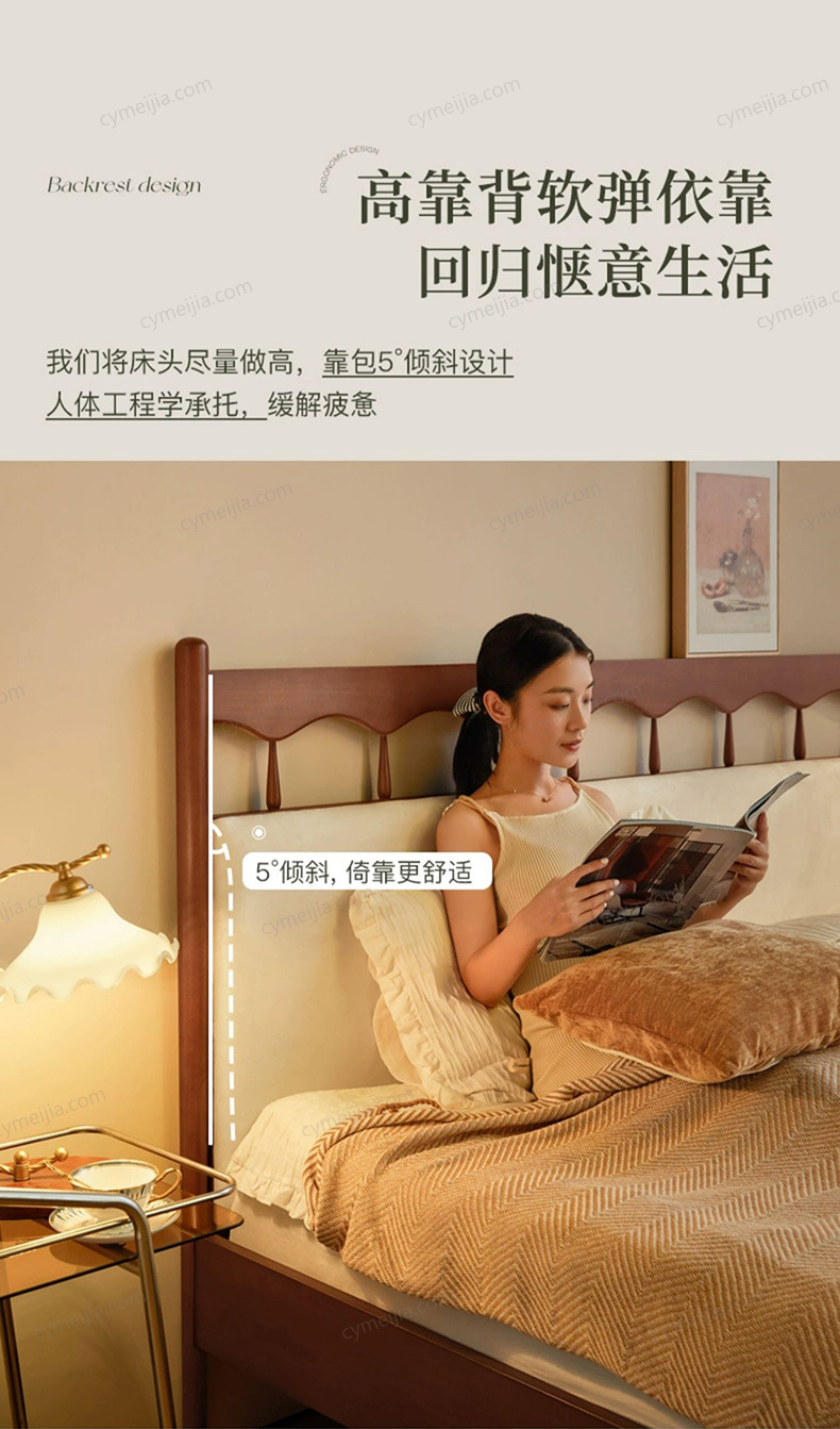 ☀ 竖琴的优雅波浪造型,搭配复古中古色调,高靠背采用5°科学倾斜设计,为背部提供恰到好处的柔韧支撑。