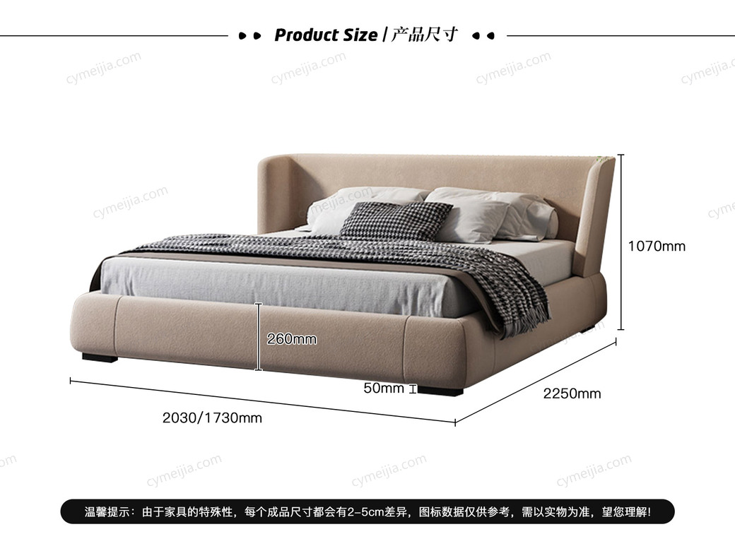 | 适配床垫 : | 长2000*宽1800*高220mm |