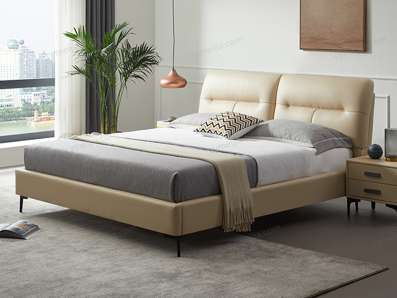 | 产地 : 佛山 | 颜色 : 米黄色 | 产品材质 : 接触面头层牛皮+高密海绵+实木框架+金属高脚 | 更多参数>> |