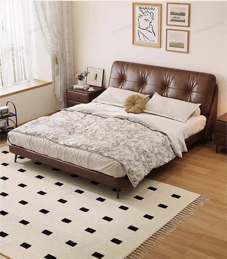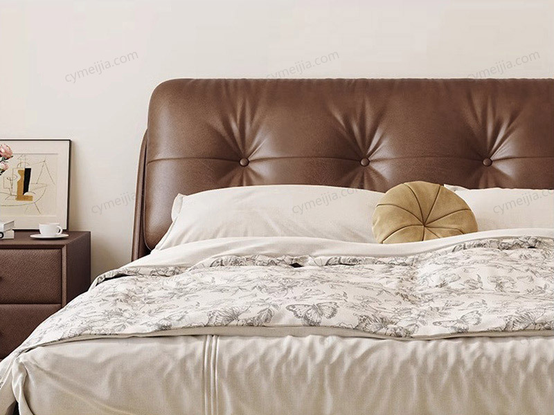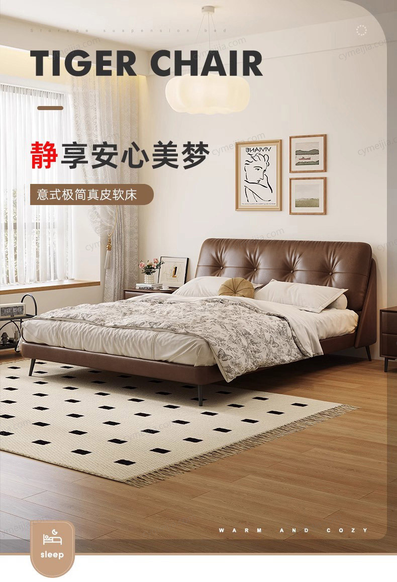 | 产品材质 : | 接触面进口头层黄牛皮+俄罗斯落叶松实木框架+高密度海绵+碳素钢脚+10公分松木排骨架 |