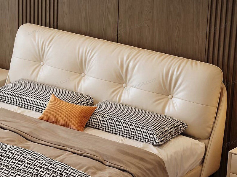 | 产品材质 : | 接触面进口头层黄牛皮+俄罗斯落叶松实木框架+高密度海绵+碳素钢脚+10公分松木排骨架 |