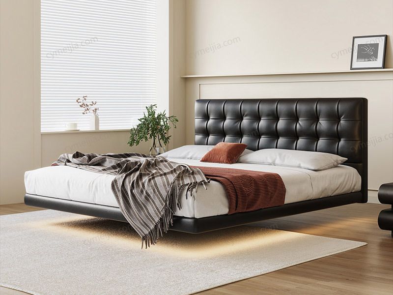 | 产品材质 : | 仿真皮+俄罗斯落叶松实木框架+高密度海绵+灯带+碳素钢脚+10公分松木排骨架 |