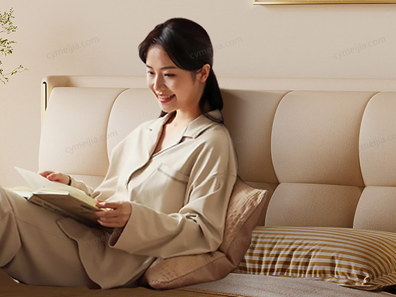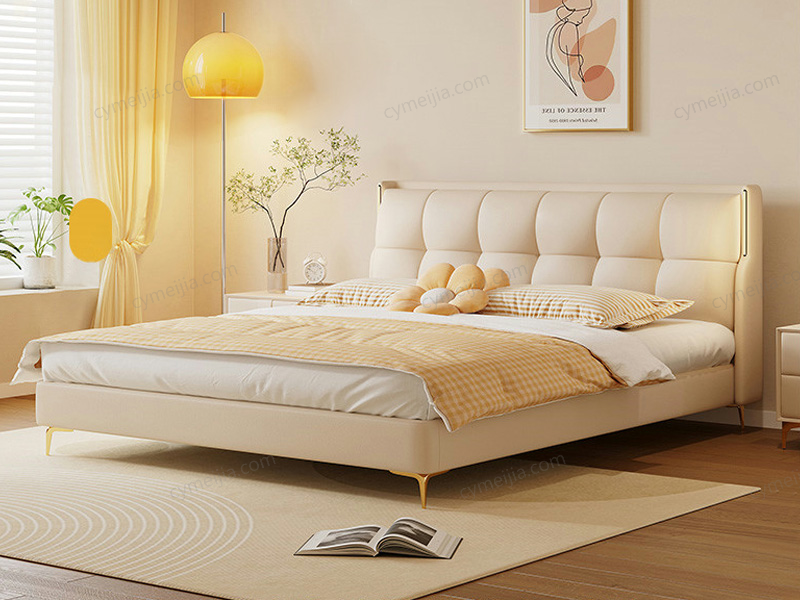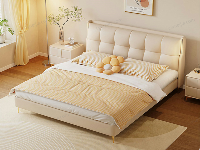 | 产品材质 : | 接触面进口头层黄牛皮+床头触摸灯带+全实木框架结构+俄罗斯进口松木框架+高回弹海绵+十公分松木排骨架 |