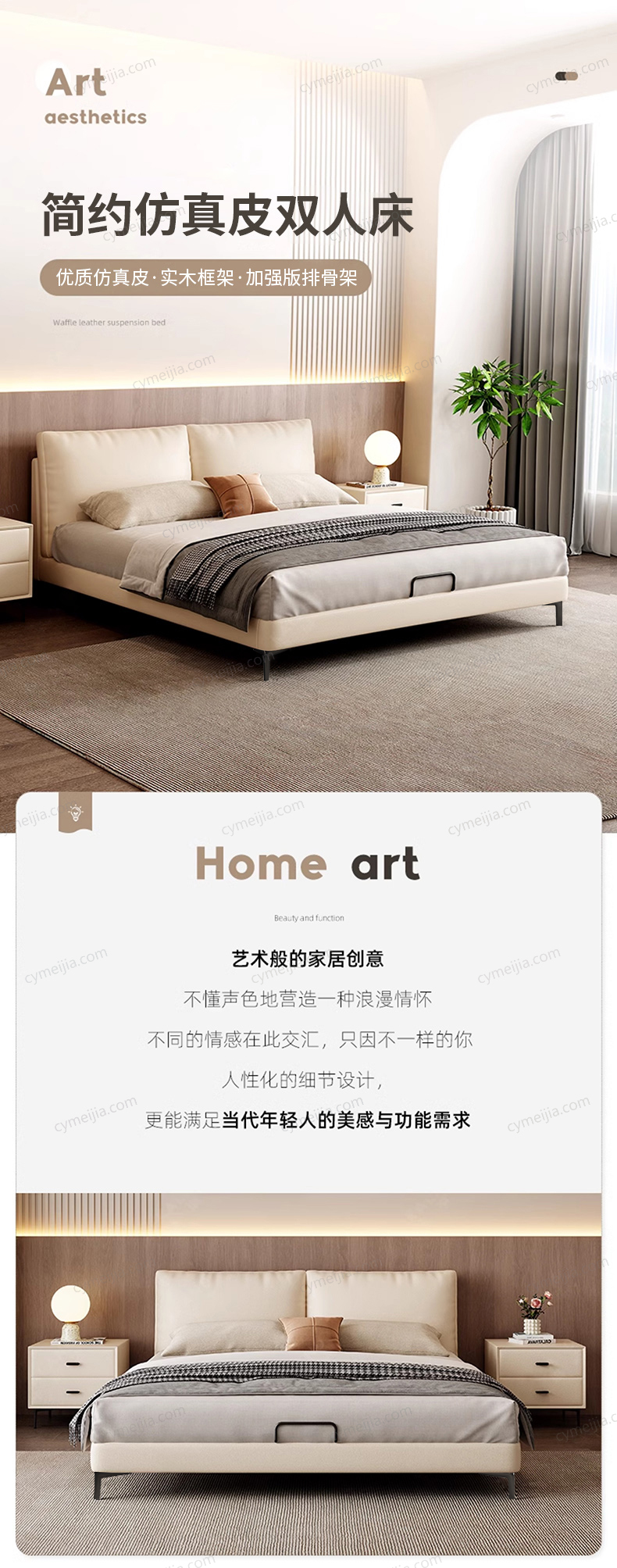 | 产品材质 : | 优质皮艺+羽绒+高密度海绵+俄罗斯落叶松实木框架+10公分松木排骨架 |