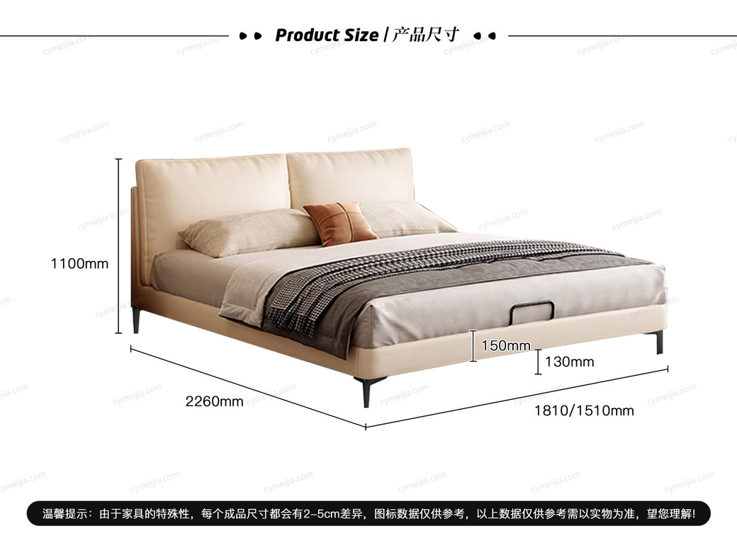 | 适配床垫 : | 长2000*宽1500*高210mm |