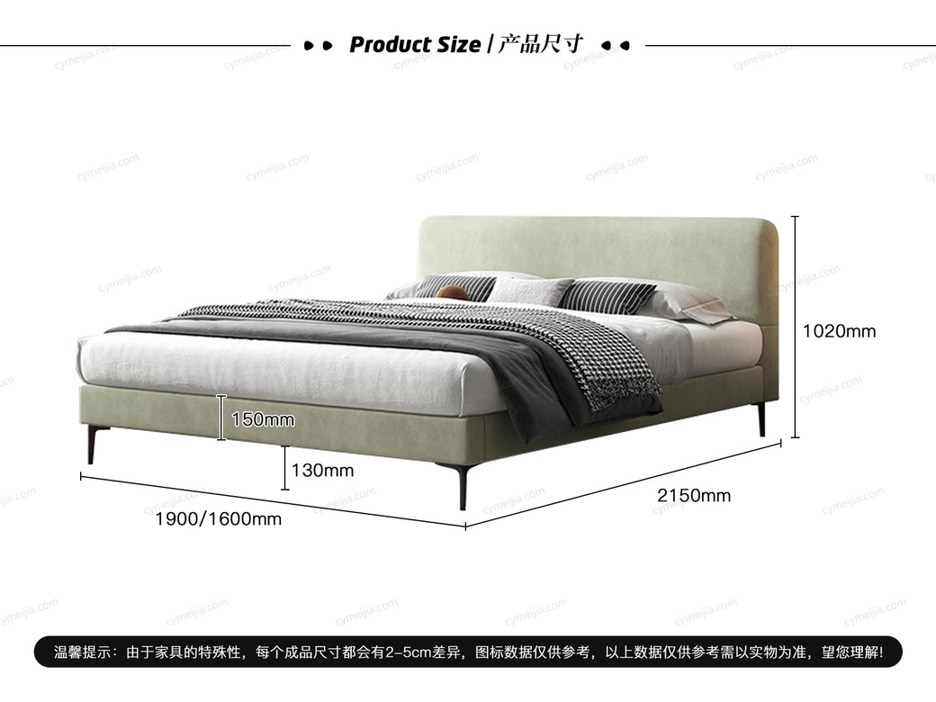| 适配床垫 : | 长2000*宽1800*高210mm |