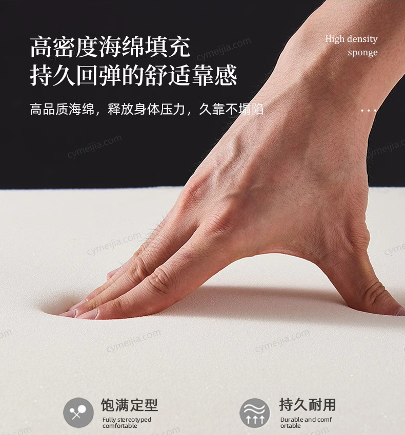 | 产品材质 : | 磨砂绒布+高密度海绵+俄罗斯落叶松实木框架+10公分松木排骨架 |