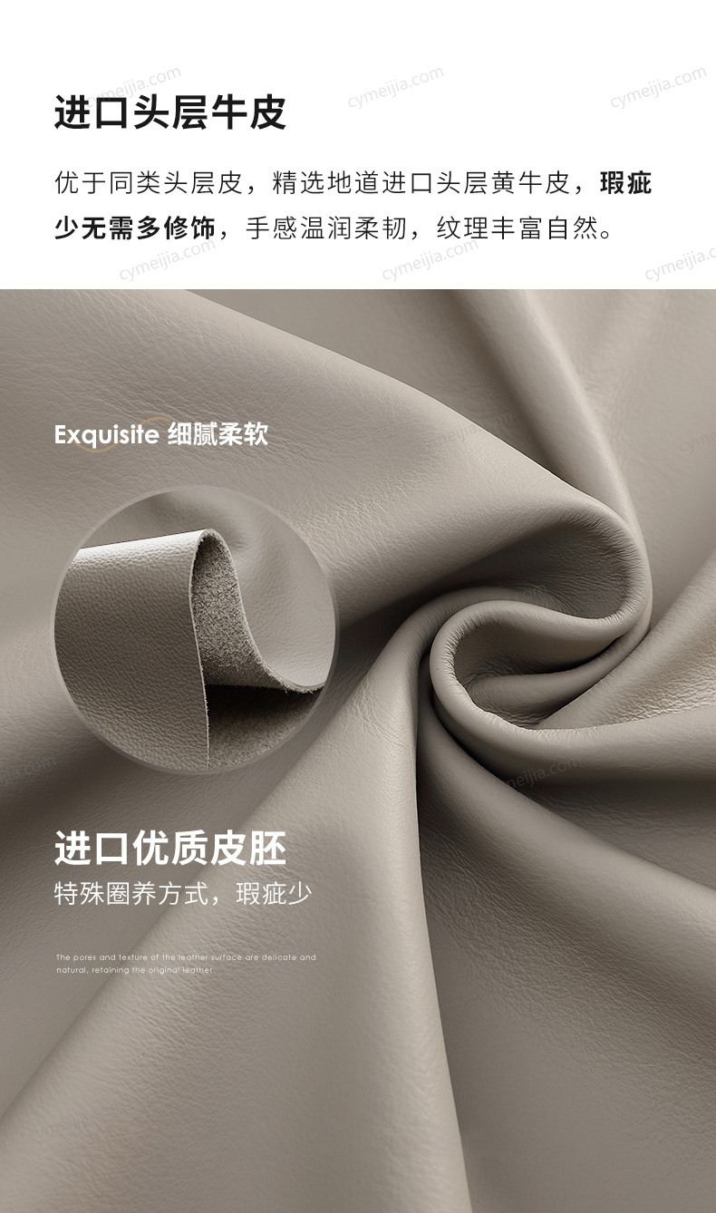 | 产品材质 : | 接触面进口头层黄牛皮+高密度海绵+俄罗斯落叶松实木框架++5公分实木脚+10公分松木排骨架 |