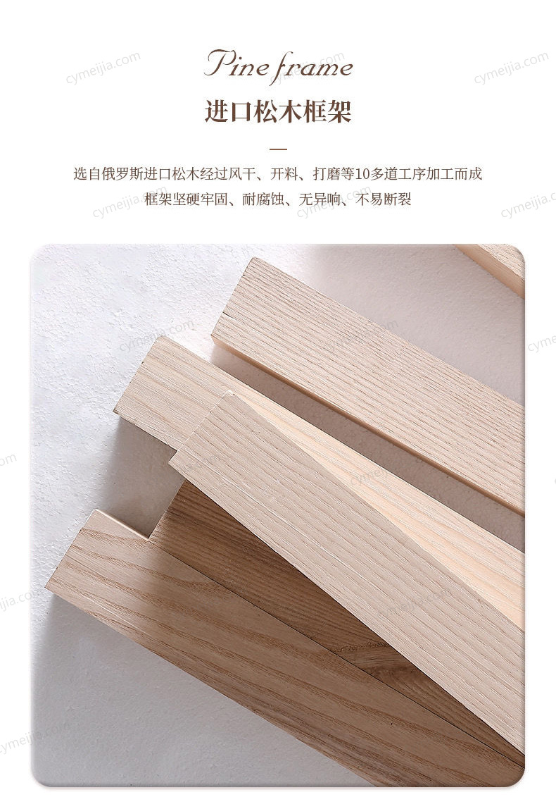 | 产品材质 : | 绒布+高回弹海绵+进口落叶松实木框架+10公分松木排骨架+碳素钢脚 |