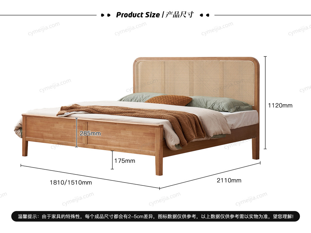 | 产品材质 : | 橡胶木+松木+藤编+静音床板 |