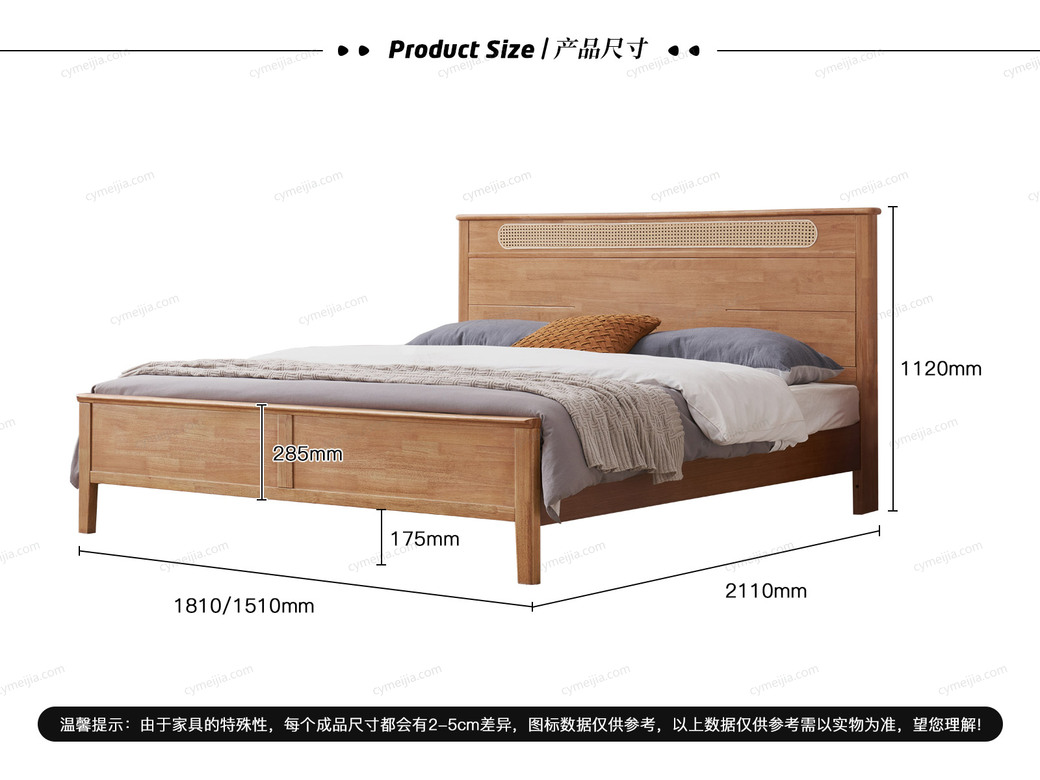 | 产品材质 : | 橡胶木+松木+藤编+静音床板 |