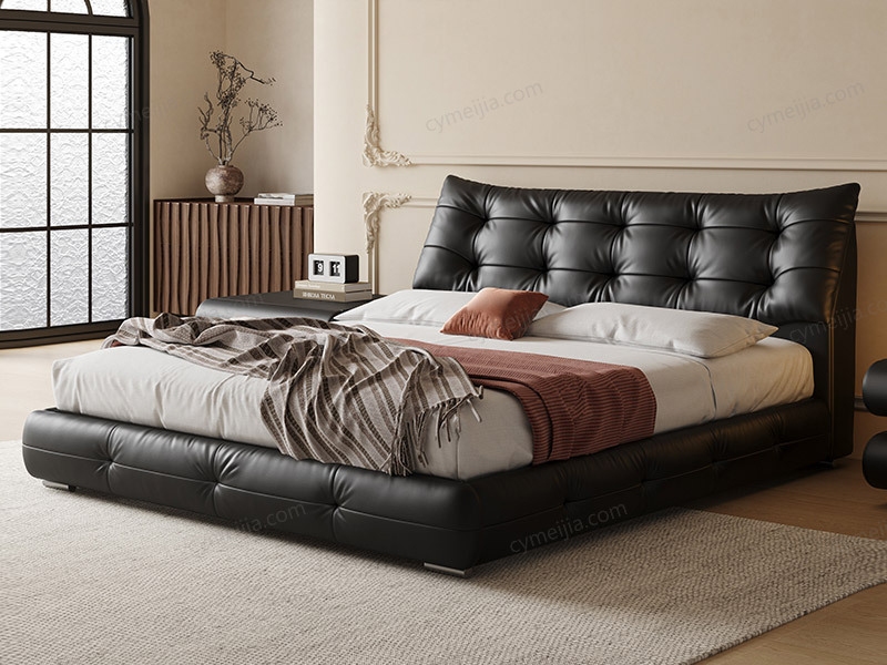 | 产品材质 : | 接触面进口头层黄牛皮+羽绒+高回弹海绵+落叶松实木框架+10公分松木排骨架+5公分黑色7字铁脚 |