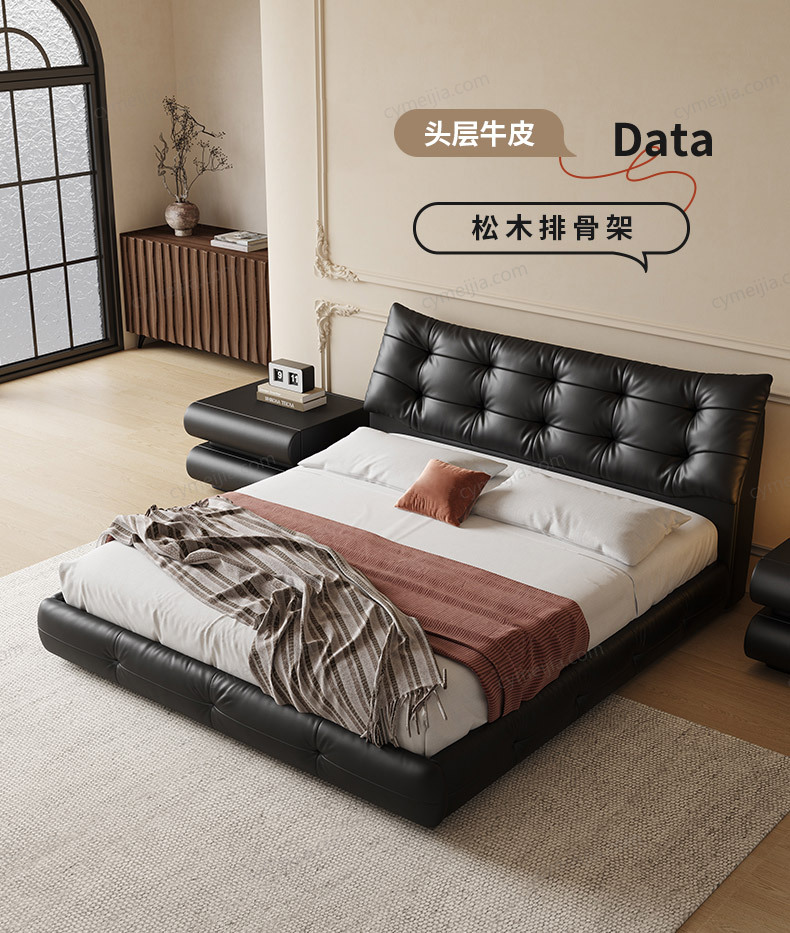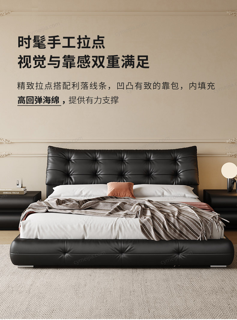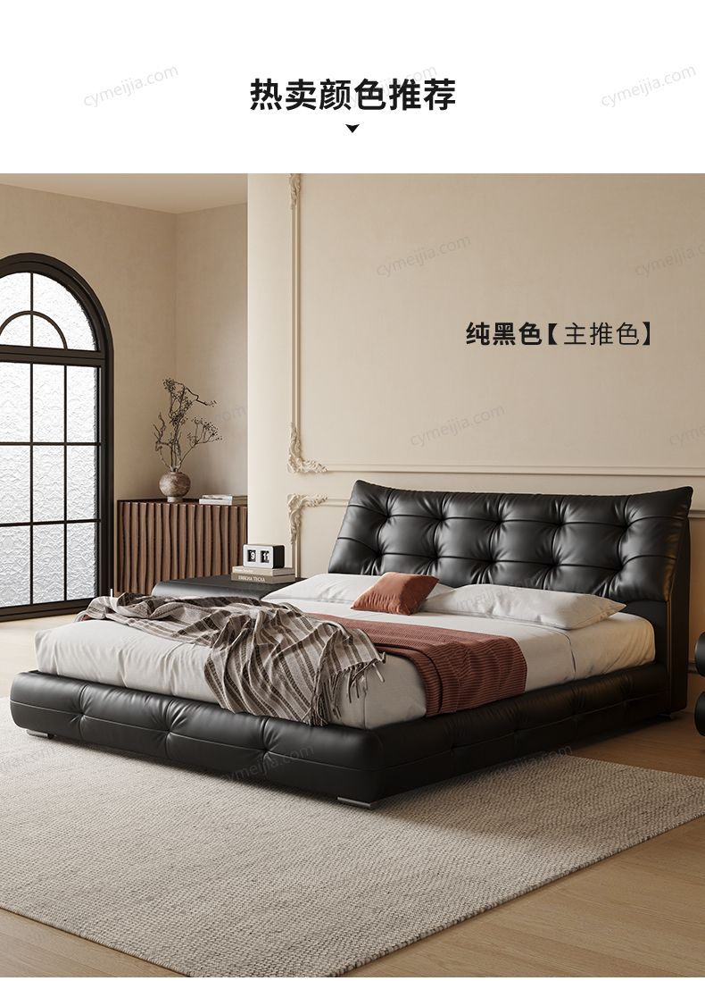 | 产品材质 : | 接触面进口头层黄牛皮+羽绒+高回弹海绵+落叶松实木框架+10公分松木排骨架+5公分黑色7字铁脚 |