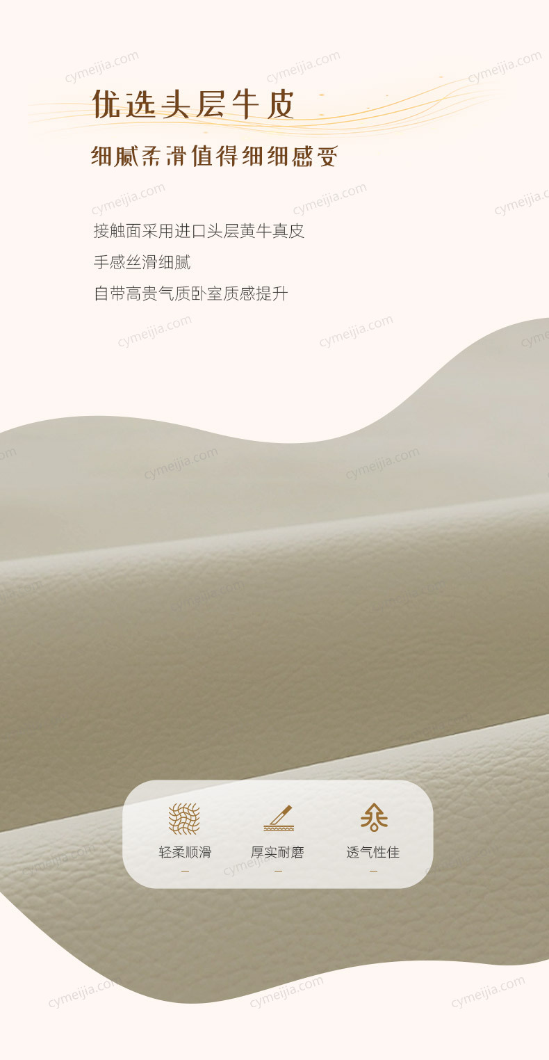 | 产品材质 : | 接触面头层小黄牛皮+落叶松实木框架+高密度回弹海绵+15公分木脚+10公分松木排骨架 |