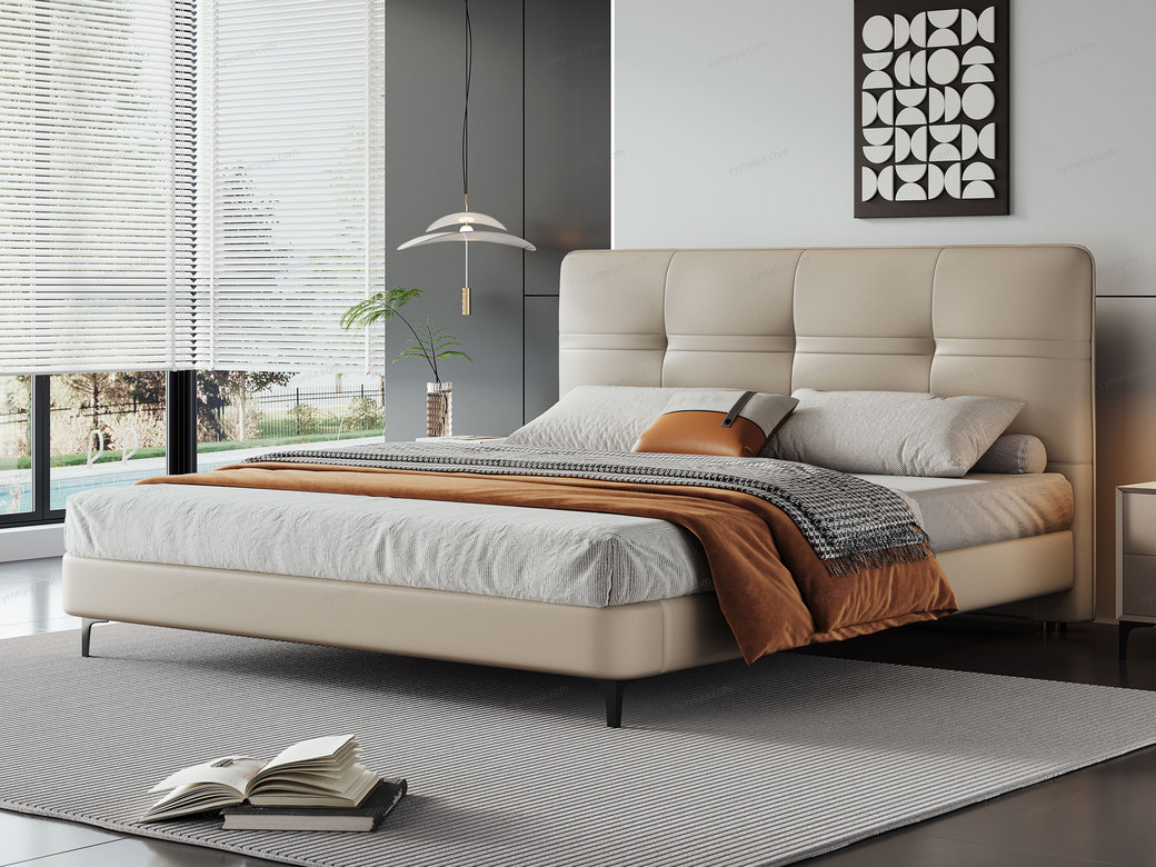 ☀ 以极简方块拉扣床头塑造高级立体感,浅卡其的色调清新雅致,为卧室注入现代轻奢的时尚气息。