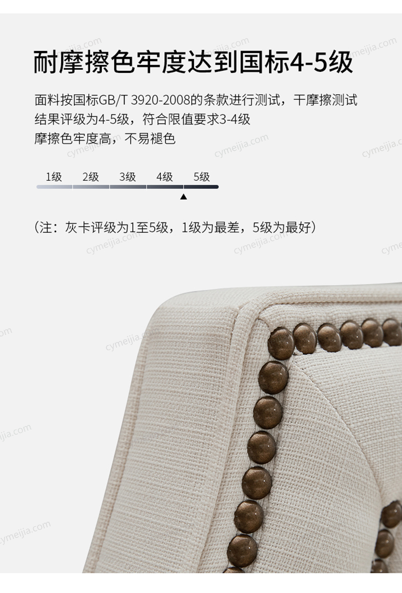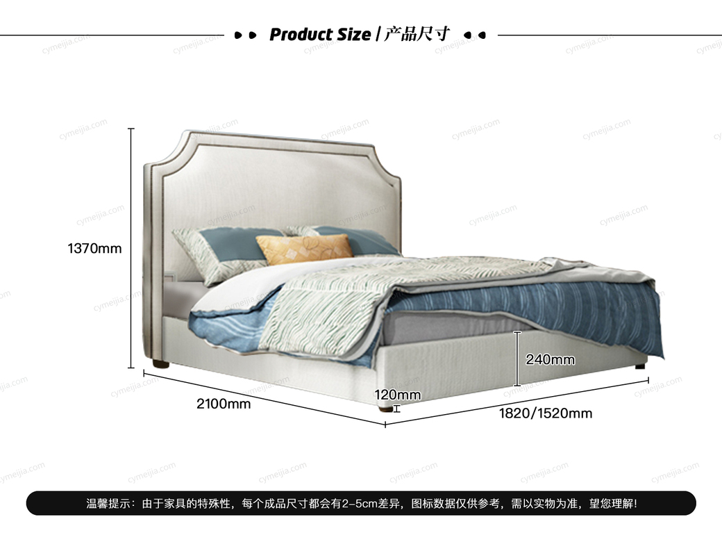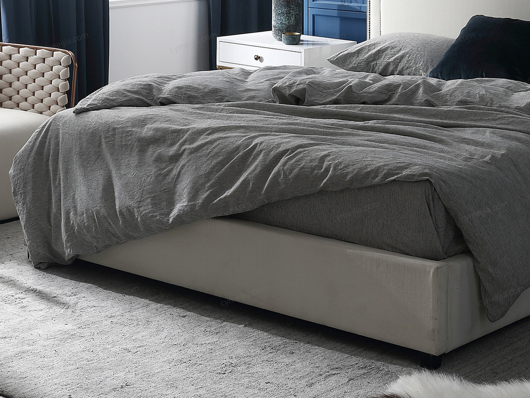 | 产品材质 : | 进口环保高密度板+实木+棉麻亲肤面料+高弹海绵+优质防氧化铆钉+10公分松木排骨架 |