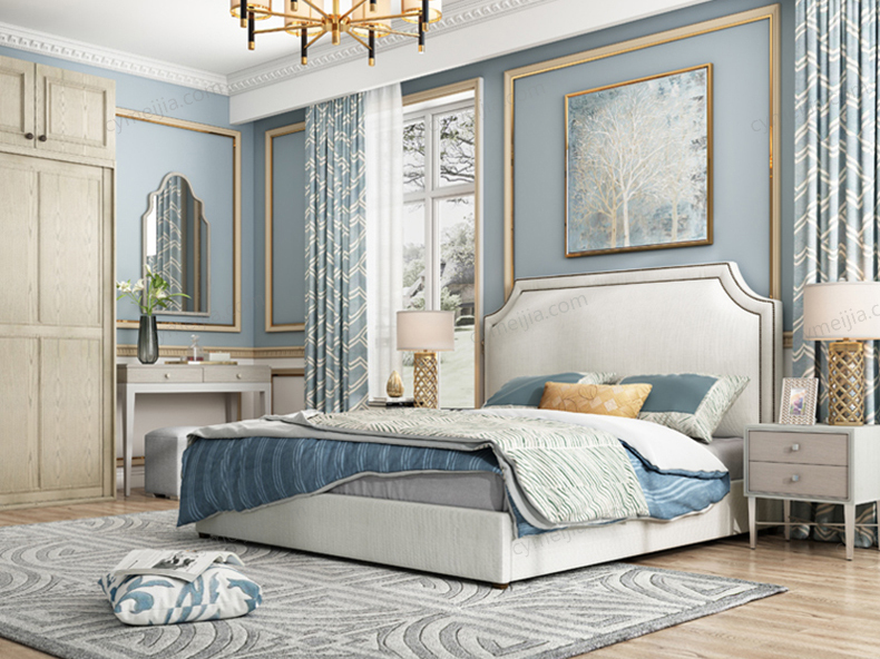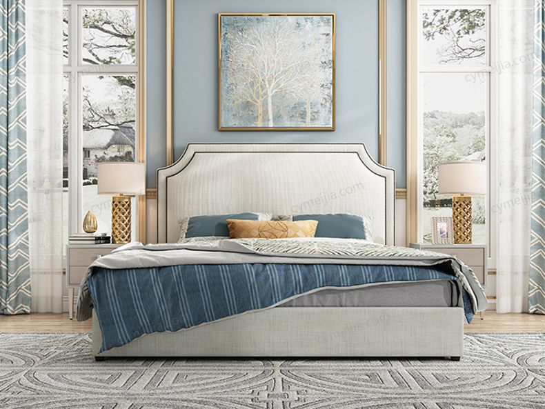 | 包装体积(m3) : 0.96 | 产地 : 佛山 | 产品材质 : 进口环保高密度板+实木+棉麻亲肤面料+高弹海绵+优质防氧化铆钉+10公分松木排骨架 | 更多参数>> |