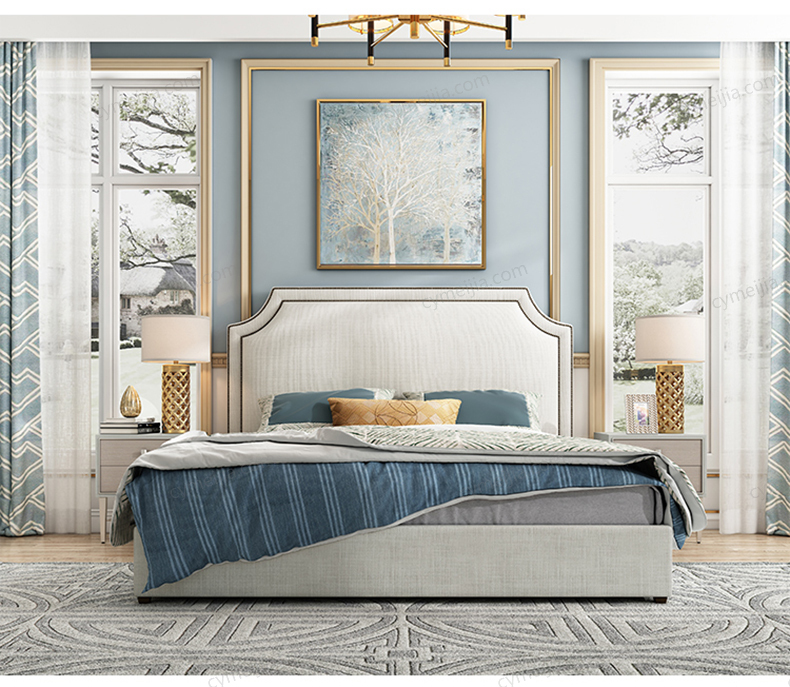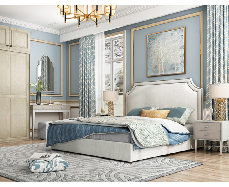 | 包装体积(m3) : 1.15 | 产地 : 佛山 | 产品材质 : 进口环保高密度板+实木+棉麻亲肤面料+高弹海绵+优质防氧化铆钉+10公分松木排骨架 | 更多参数>> |