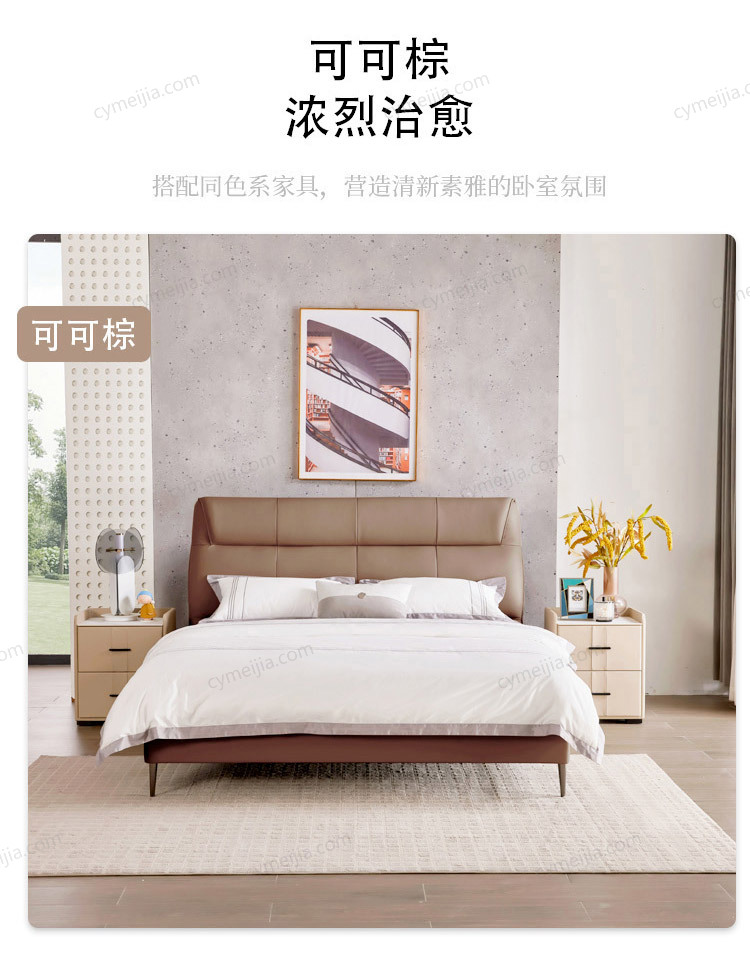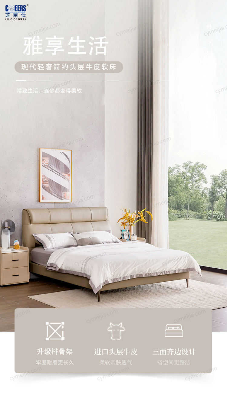 芝华仕雅享系列旗舰款真皮床以进口头层牛皮、人体工学设计、轻薄省空间及智能细节为核心竞争力,尤其适合追求品质与实用性的都市家庭。奶杏色的温柔调性与极简线条,使其成为现代卧室的百搭之选。