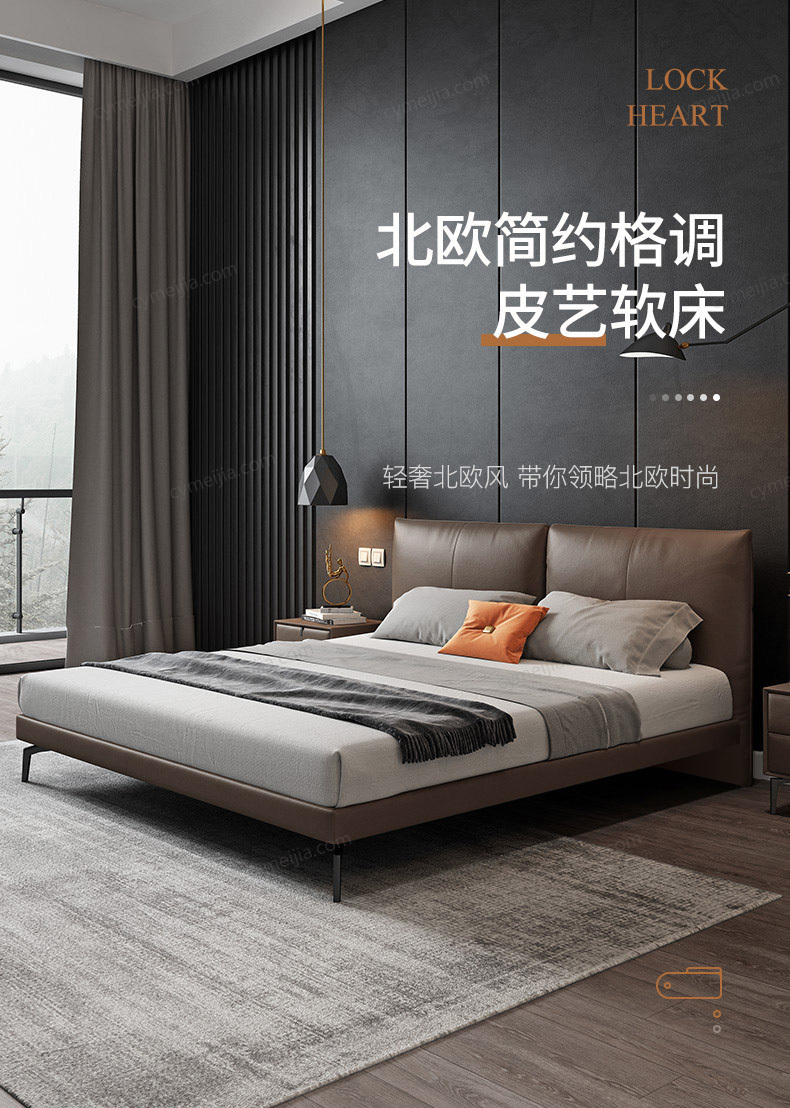 ◕ 床头选用优质仿真皮,触感细腻易打理,外观简约大气,为卧室营造高级整洁的视觉效果。