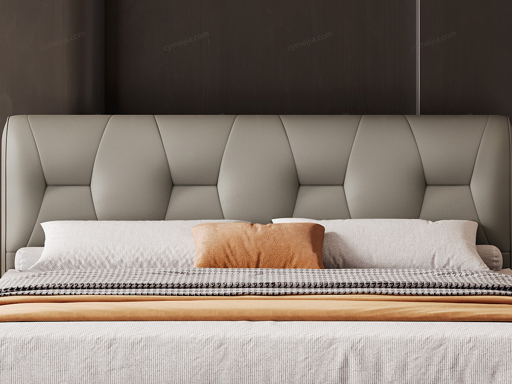 ☀ 床屏深拉线工艺勾勒出精致的几何图形,打破单一平面,塑造立体的雕塑感。