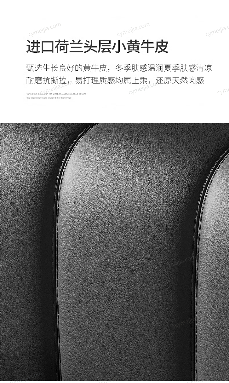 | 产品材质 : | 接触面进口头层黄牛皮+高密度海绵+俄罗斯落叶松实木框架+10公分松木排骨架+五金脚 |