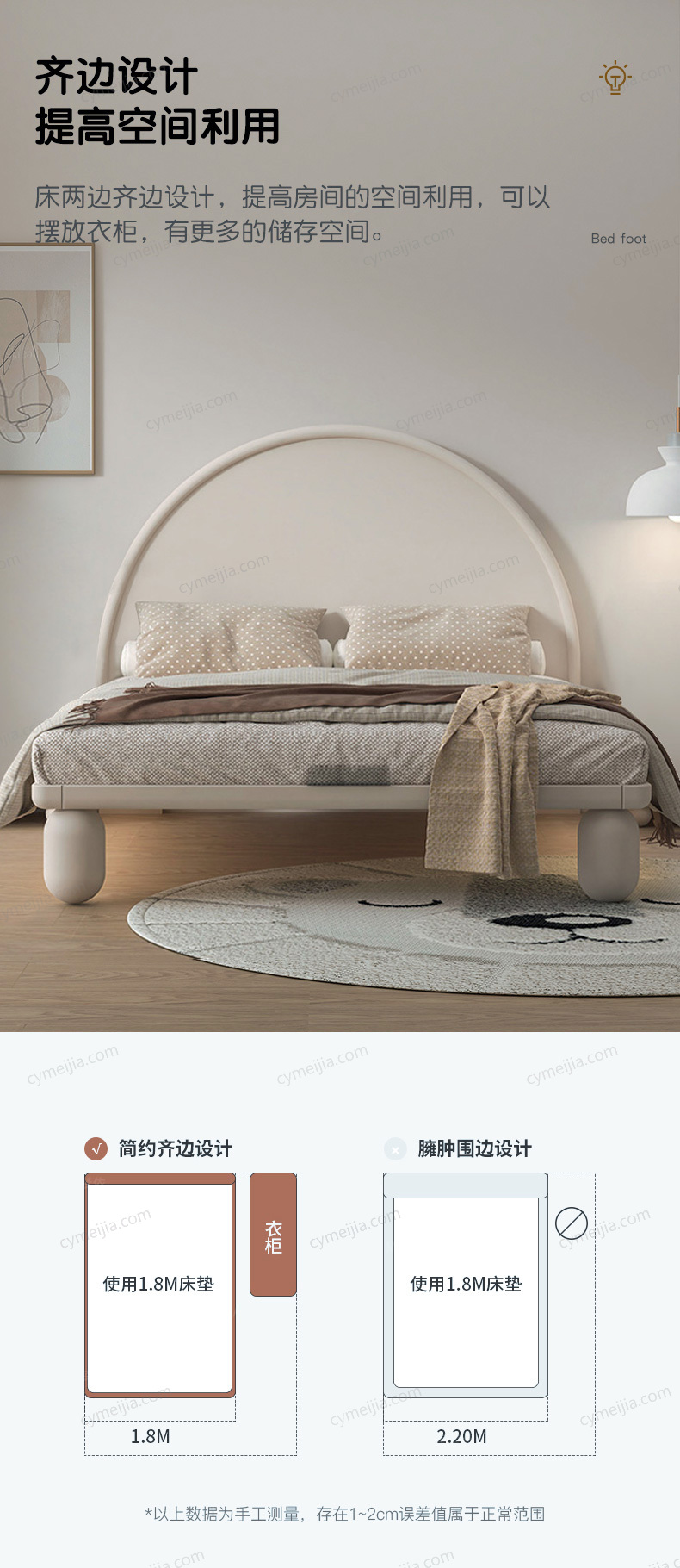 | 适配床垫 : | 长2000*宽1200*高150-220mm |