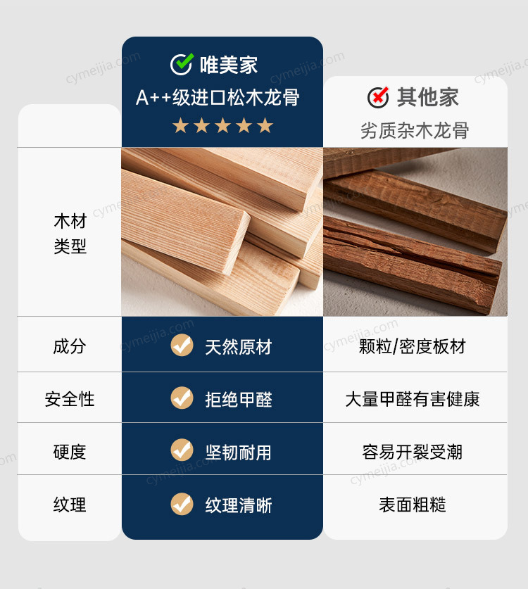 ◕ 高定级全实木框架,进口俄罗斯落叶松精方,木方2*4cm,比市面同行厚1-2cm,更加稳固支撑,耐用承托。