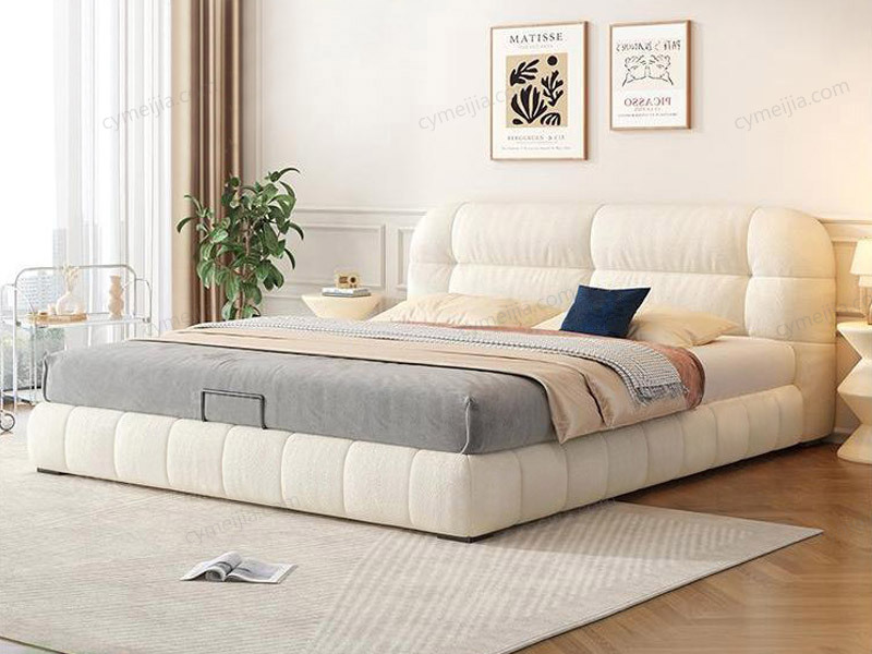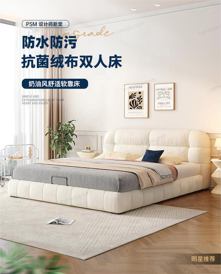 ☀ 圆润的床头与床体线条设计,弱化硬朗感,营造柔和温馨的空间氛围;整体造型大气饱满,是卧室视觉焦点,轻松提升空间格调。