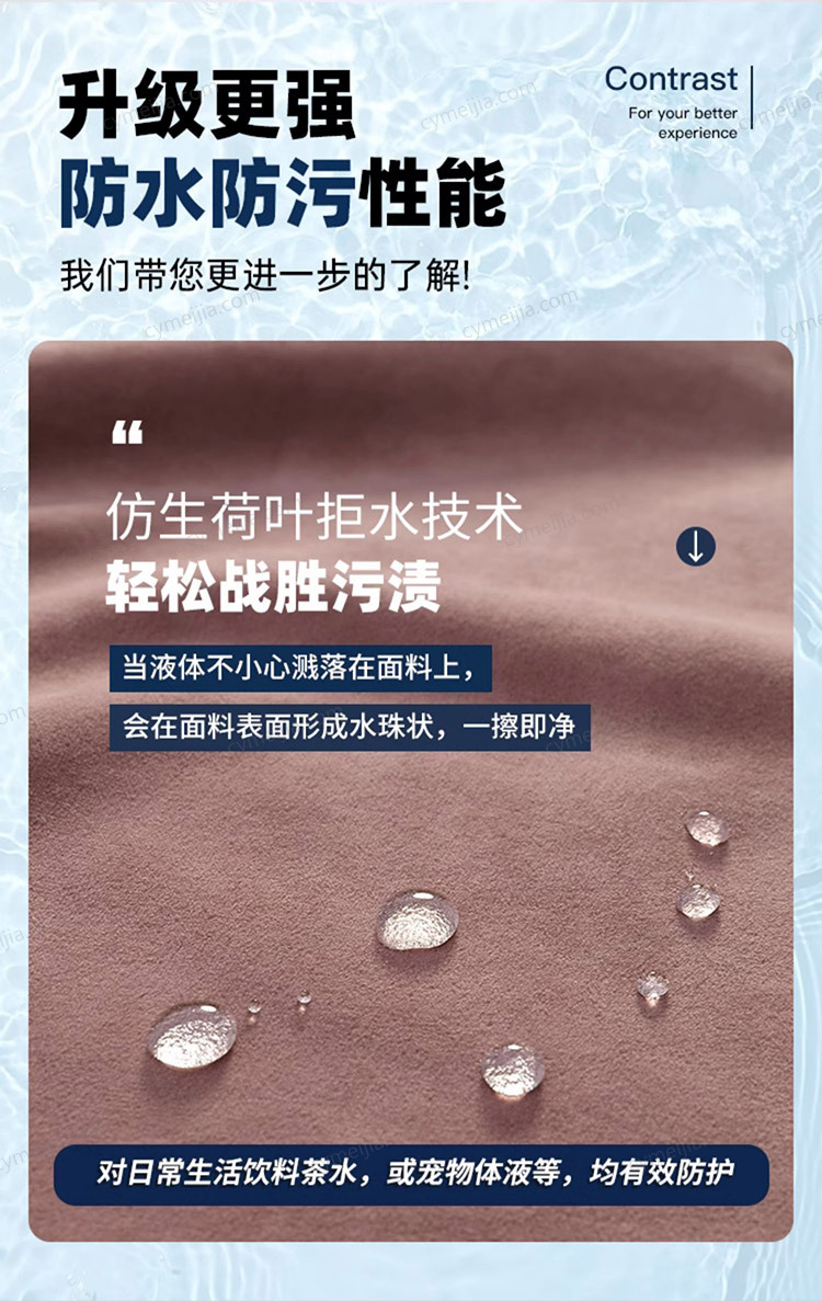 ◕ 采用了高科技防水防污抗菌绒布,无惧日常泼洒与污渍,打理轻松,尤其适合有宝宝或宠物的家庭。