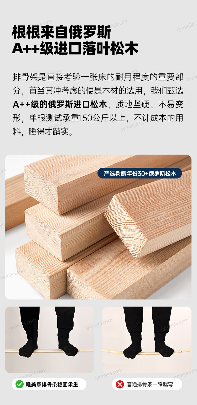 ✿ 搭配10cm松木排骨架。排骨条升级加厚11mm,比同行厚2-3mm,间距<5cm承重更均匀。钢架壁厚3cm,碳素方管加固满焊,承载力达500KG,底架含支撑脚更安全。
