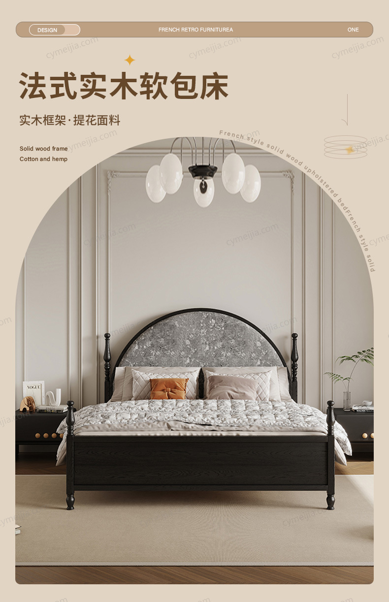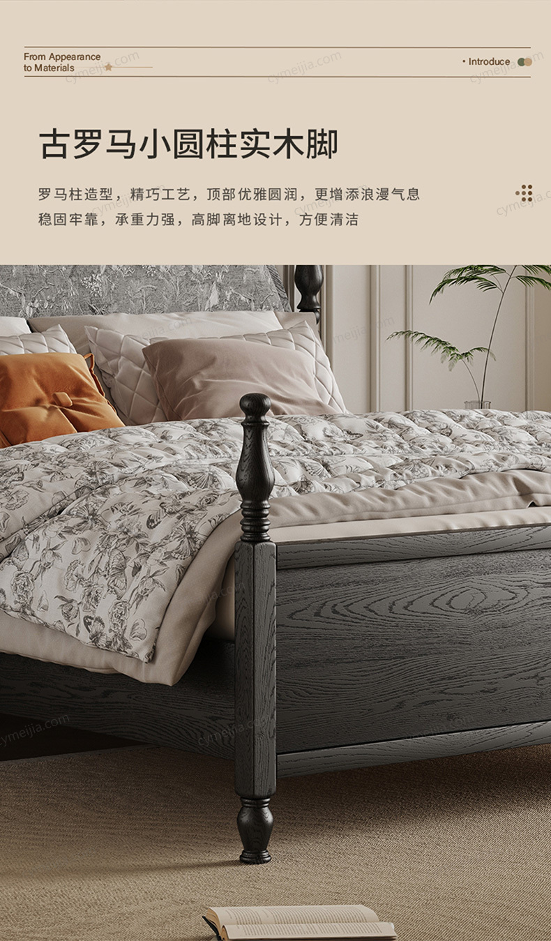 | 产品材质 : | 北美进口白蜡木框架+实木多层板+高密度海绵+松木床板条 |