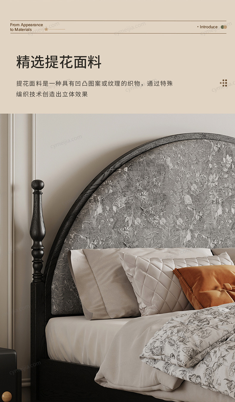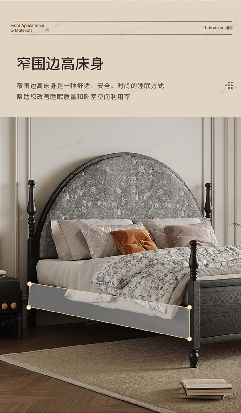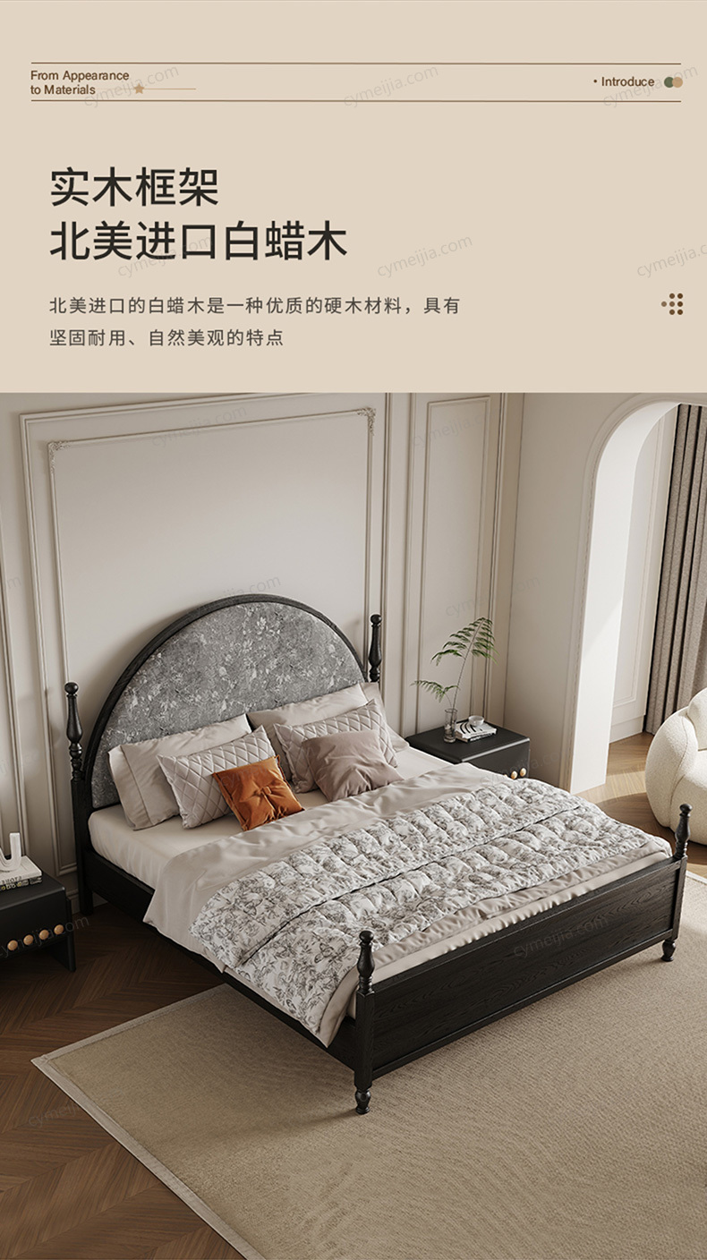 | 产品材质 : | 北美进口白蜡木框架+实木多层板+高密度海绵+松木床板条 |