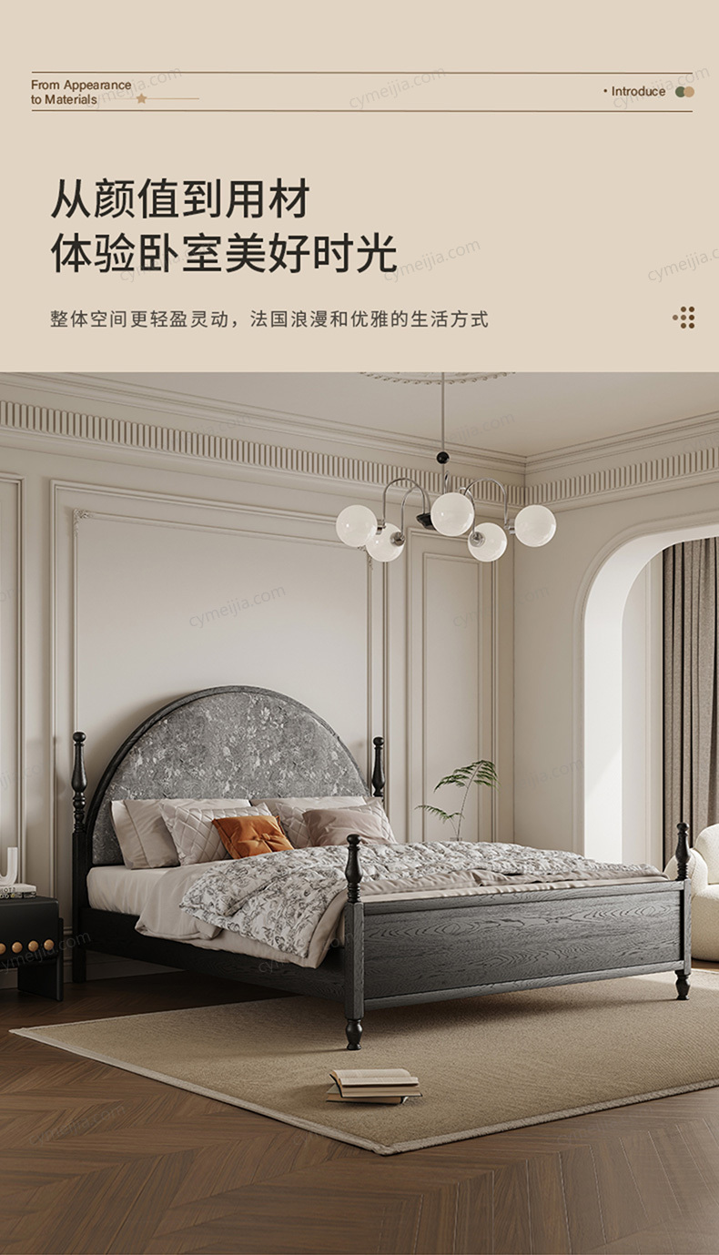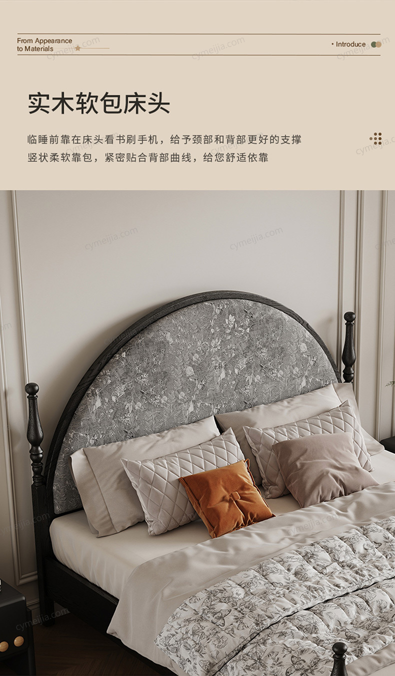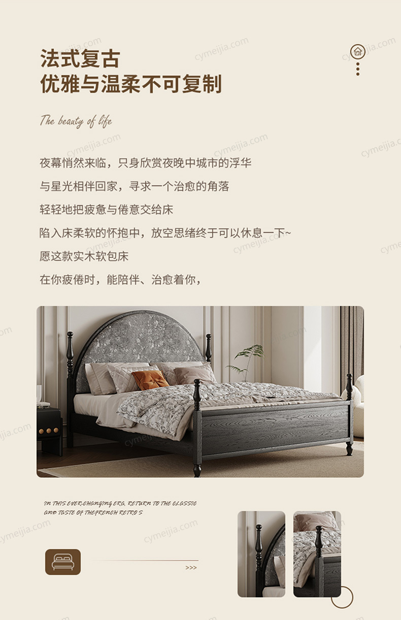 | 产品材质 : | 北美进口白蜡木框架+实木多层板+高密度海绵+松木床板条 |